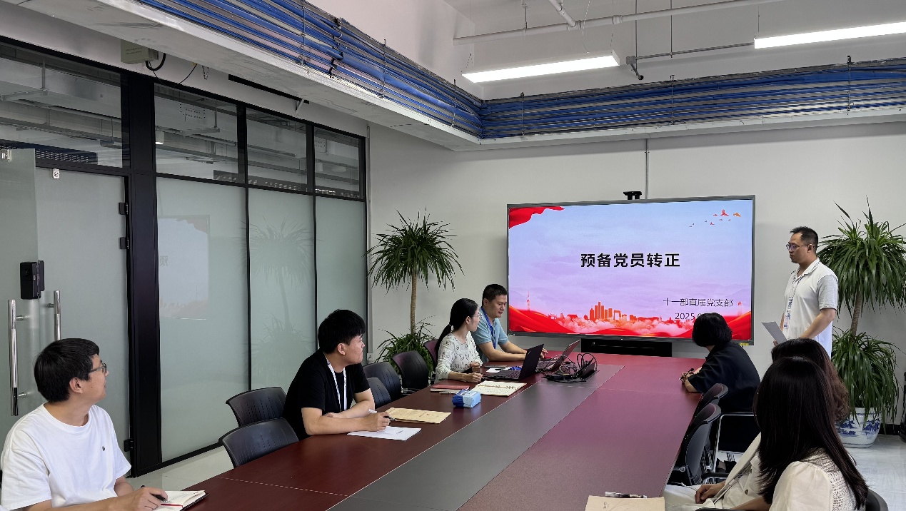 2025年6月20日,十一部直属党支部在D座506会议室召开全体党员大会。党支部书记孔新新同志主持会议,全体党员同志准时参会。会议聚焦两项核心议题:预备党员杨帅同志转正与《党政机关厉行节约反对浪费条例》专题学习,通过严实作风凝聚共识,以思想淬炼筑牢根基,为党支部建设注入新动能。
