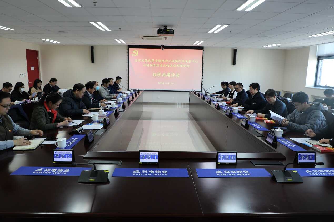 2025年11月25日,国家发展改革委城市和小城镇改革发展中心(以下简称“城市中心”)党总支副书记、副主任刘强带队,赴空天院联合开展“城心城议”主题党日联学共建活动。空天院党委书记、副院长张兵对刘强副书记一行表示热烈欢迎,并参加了主题党日活动。空天院党办、科技处、三室、五室、一部、九部等部门参加了本次主题党日活动。