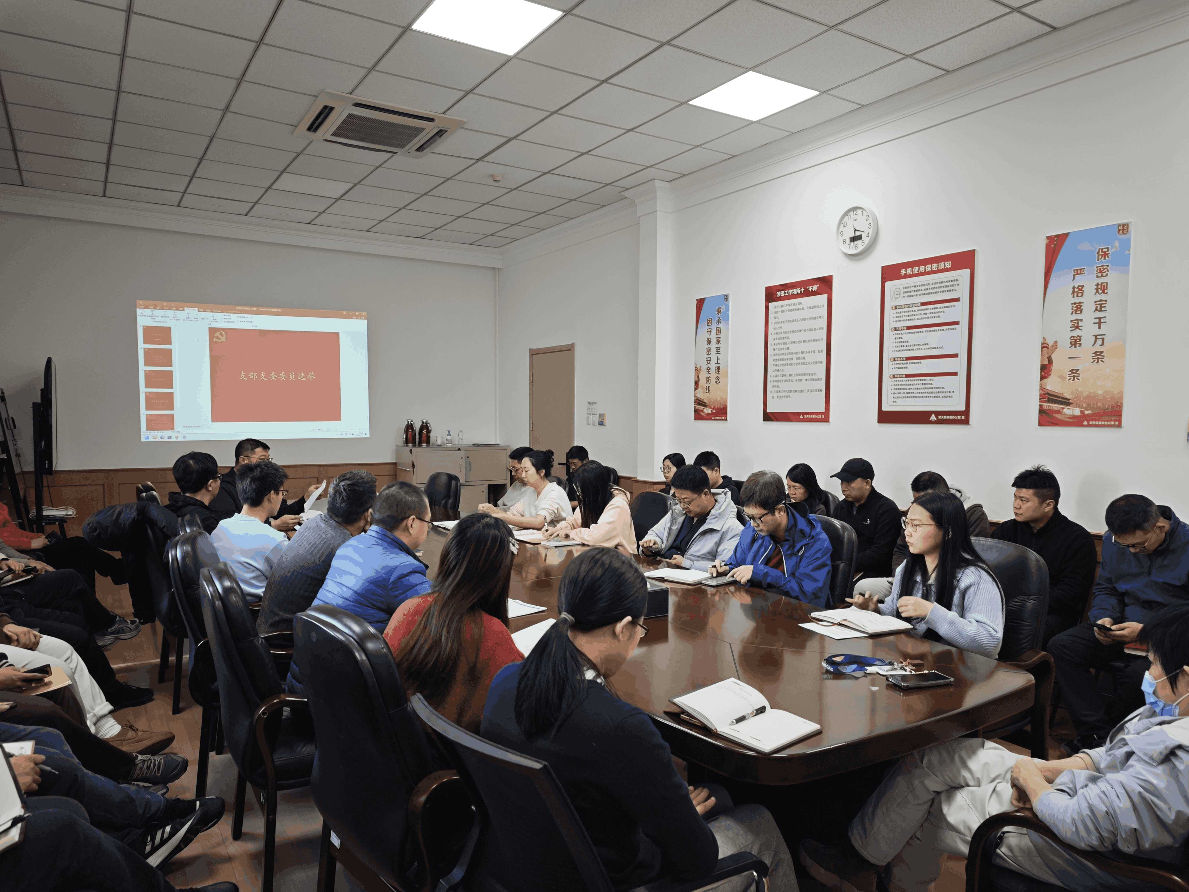 会议第一项,召开支部委员会换届选举。党支部书记周长义宣读新一届支委会委员候选人名单,并逐一介绍候选人的基本情况和主要工作实绩。会议严格按照《中国共产党基层组织选举工作条例》及相关规定,以无记名投票、差额选举的方式,规范完成了投票、计票与监票程序,会议现场宣布了选举结果及新一届支部委员会委员名单。