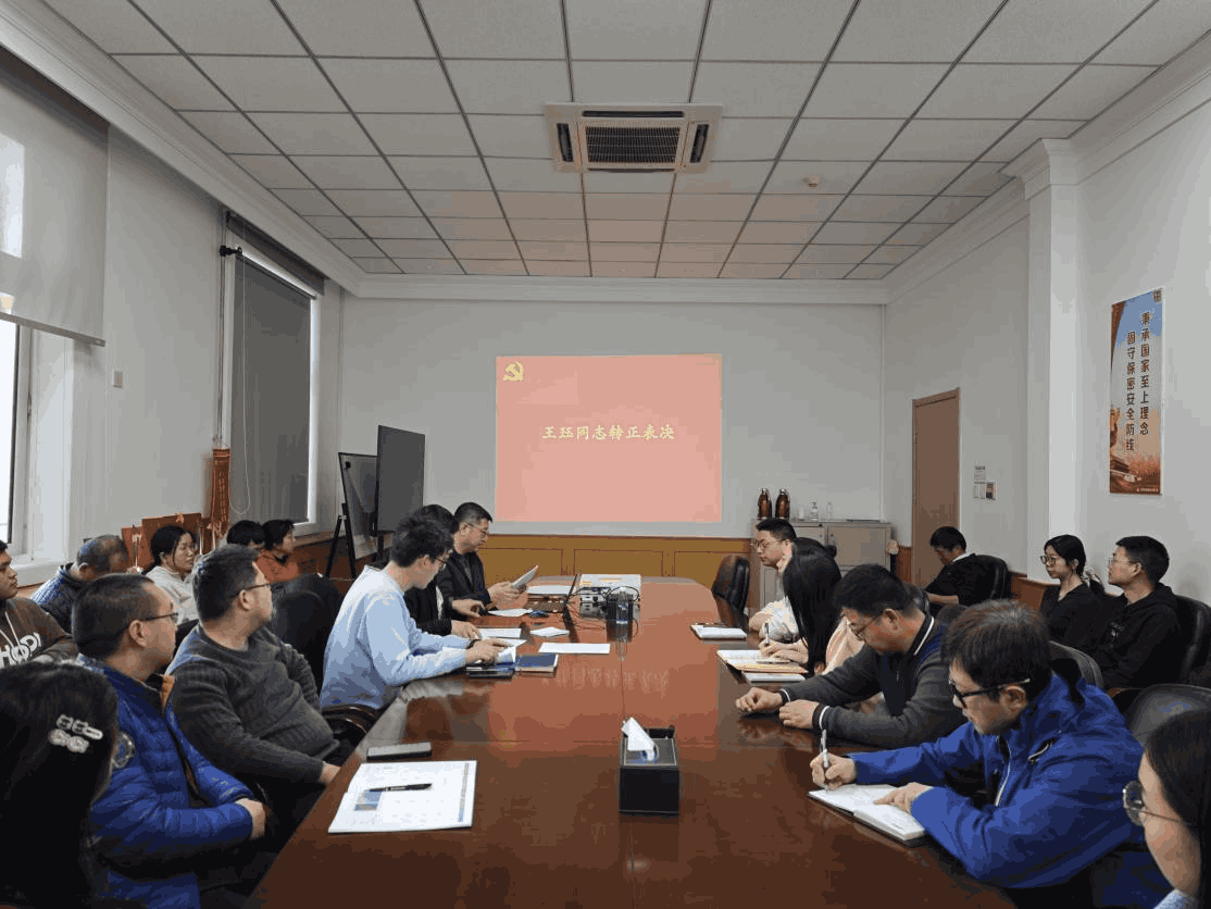 会议第二项,进行预备党员王珏同志转正表决,由组织委员赵尔康主持。预备党员王珏同志宣读转正申请书,详细汇报了预备期间的思想动态、工作表现与学习收获。两位入党介绍人张冰玉、王小龙分别介绍了王珏同志在预备期内的培养考察情况,一致认为,该同志政治立场坚定,工作认真负责,能够高质量、高效率地完成组织与领导交办的各项任务,具备扎实的业务能力和团队协作意识,以实际行动体现了党员的先锋模范作用和奉献精神。经全体与会党员无记名投票表决,一致同意王珏同志转为中共正式党员。
