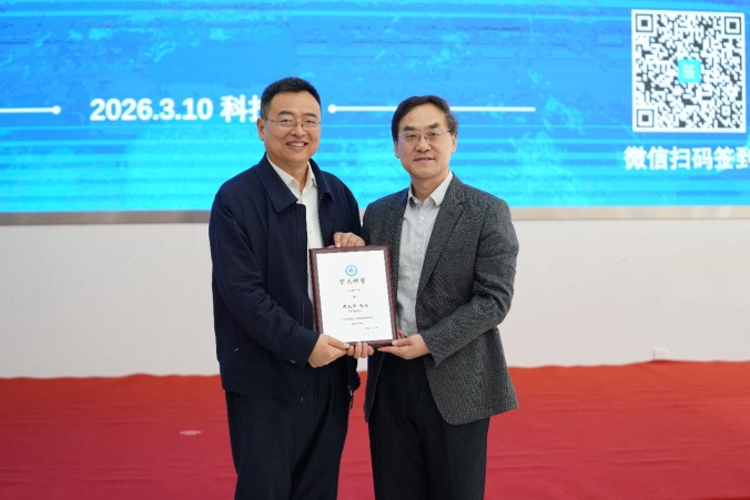 讲座结束后,张兵代表空天院为席北斗颁发“空天讲堂”荣誉证书,代表空天院党委领导对席北斗给予空天院科研工作的支持和指导表示感谢。