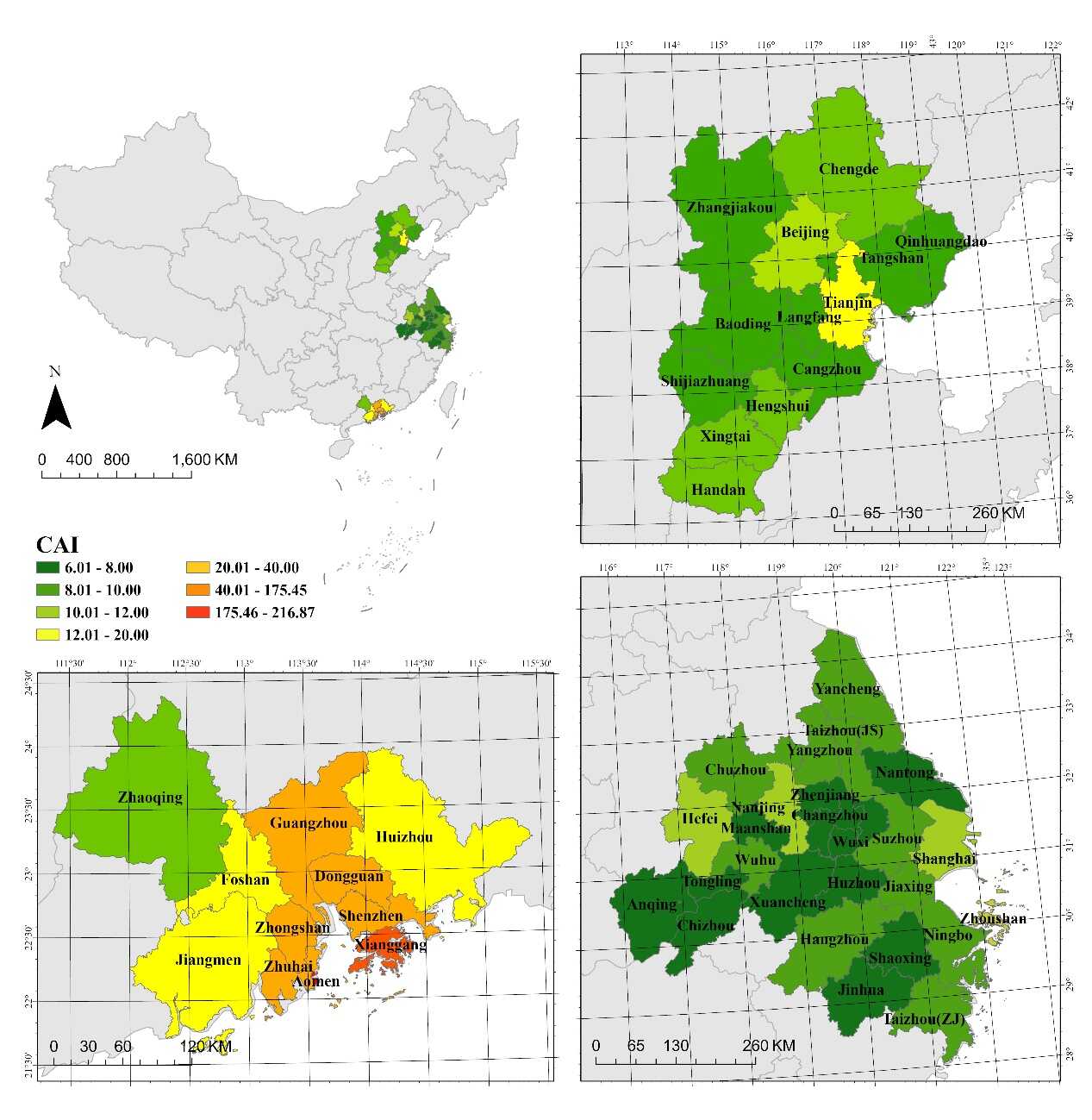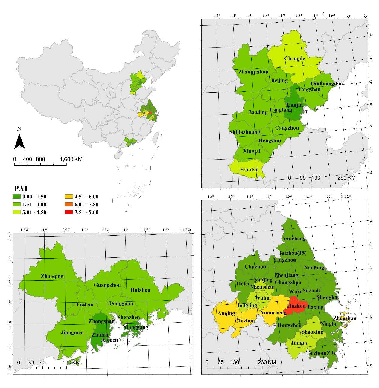 研究团队利用SDGSAT-1卫星获取的10米高分辨率夜光数据,系统分析中国京津冀、长三角和粤港澳大湾区三大城市群的人类活动特征。研究基于复合夜光指数(CNLI)构建了城市活力指数(CAI)和人口活力指数(PAI),从空间开发、经济活力和人口集聚等多维度刻画城市发展水平。