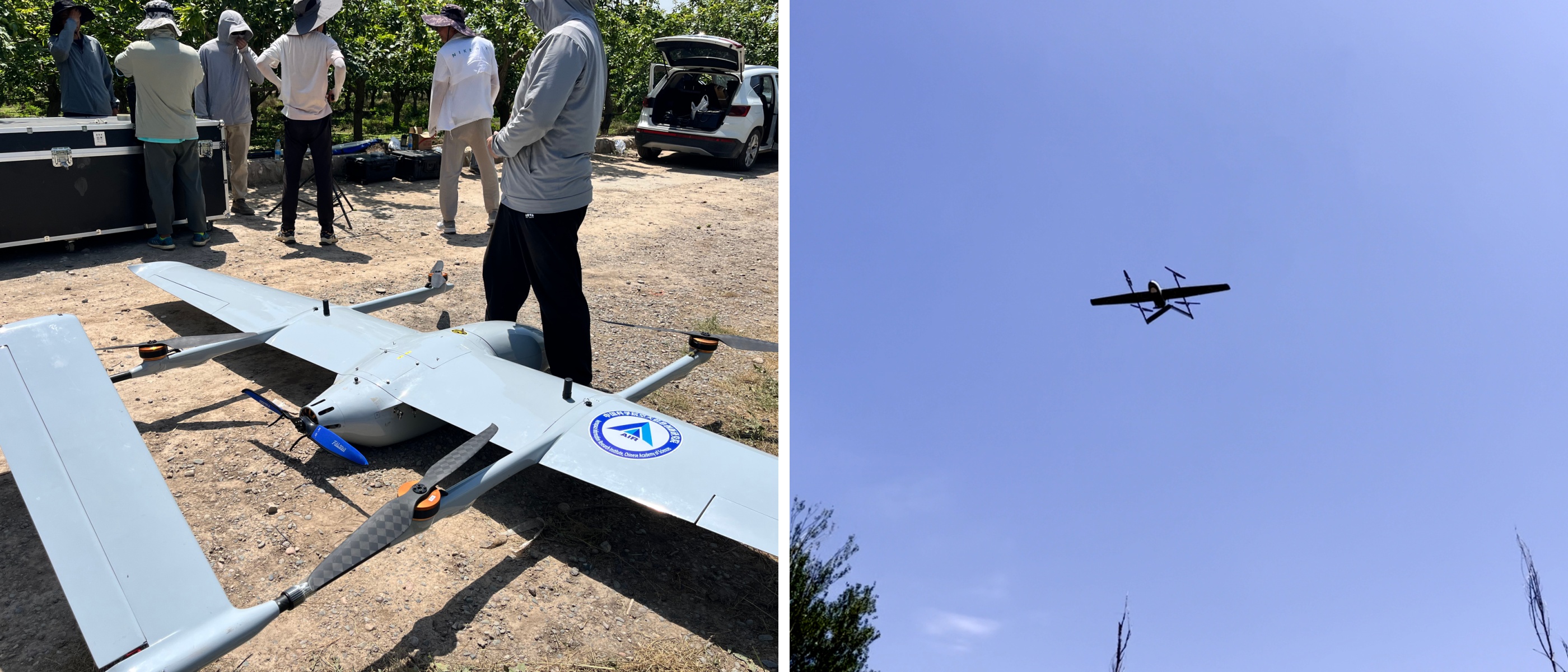 一是开展多尺度多高度条件下的无人机航空观测试验。项目组基于前期多卫星载荷的规划方案,使用两个机型搭载包括激光雷达、高光谱、热红外成像仪、SAR微波四类载荷,在黑河流域的上游、中游、下游共6个测区,进行了共计22架次的数据获取,覆盖了上中下游多地物多种类的航空数据。