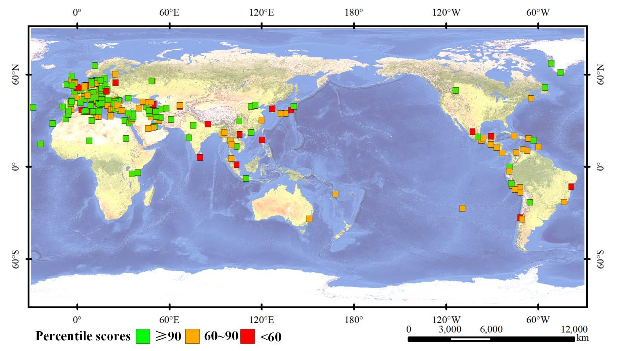 图2 2015-2020 年世界文化遗产自然—社会协同影响的百分位得分分布