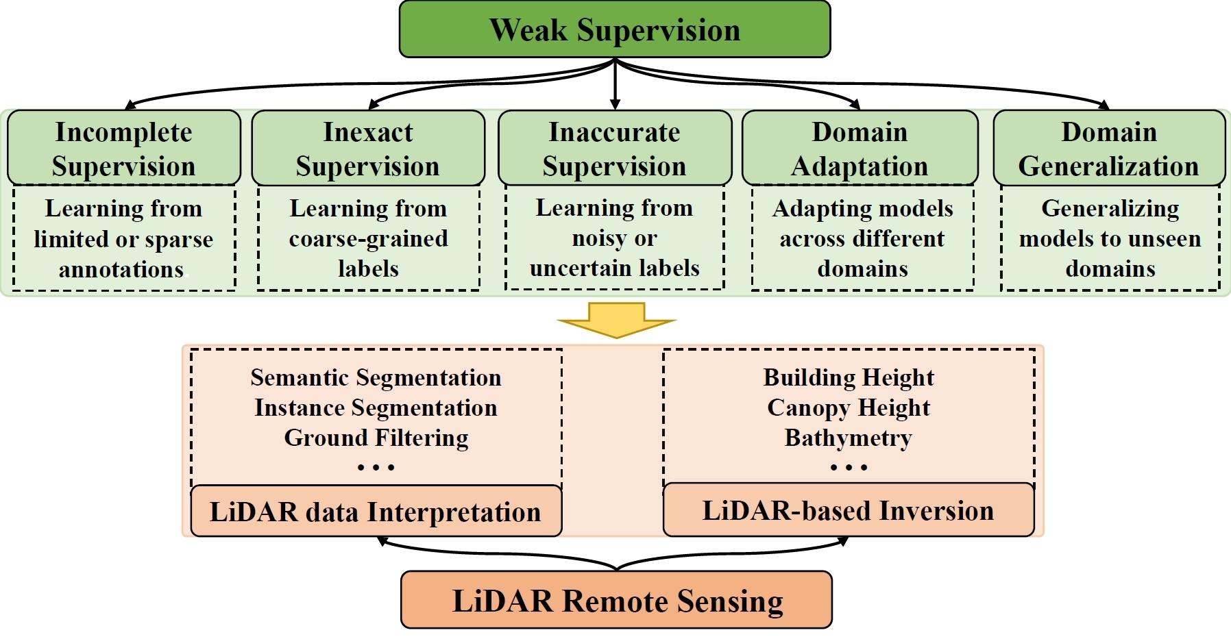 图2 广义弱监督学习视角下的LiDAR遥感方法与应用体系