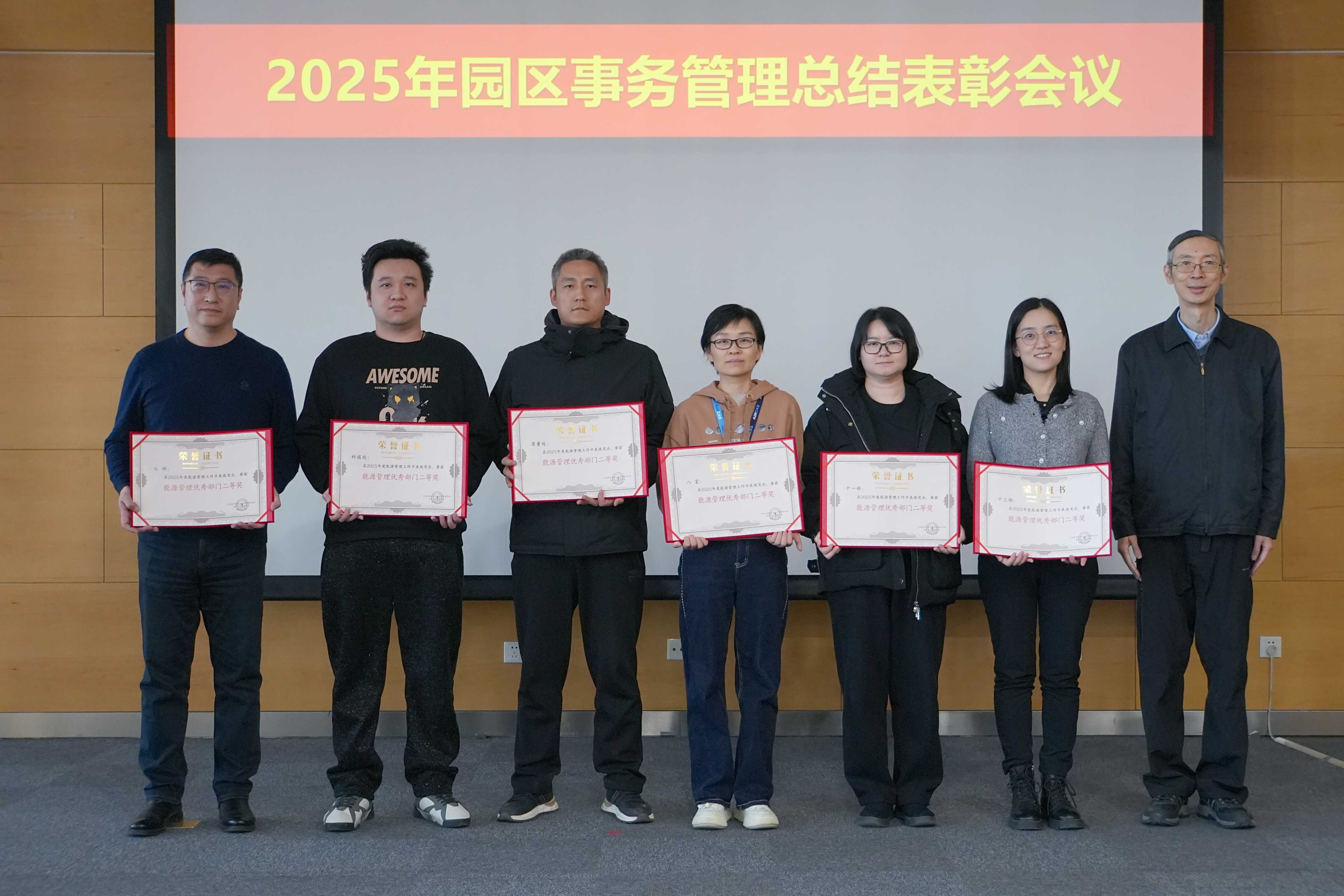 会议伊始,园区与后勤保障处作2025年度园区事务管理工作报告,全面梳理了过去一年在园区运维、能源管控、服务保障等方面的工作举措与成果。在表彰环节,会议对2025年度能源管理优秀部门和优秀园区事务管理员进行表彰。经前期严格评选,16个部门获评“能源管理优秀部门”,17名人员获评“优秀园区事务管理员”,与会领导为获奖集体和个人颁发证书。