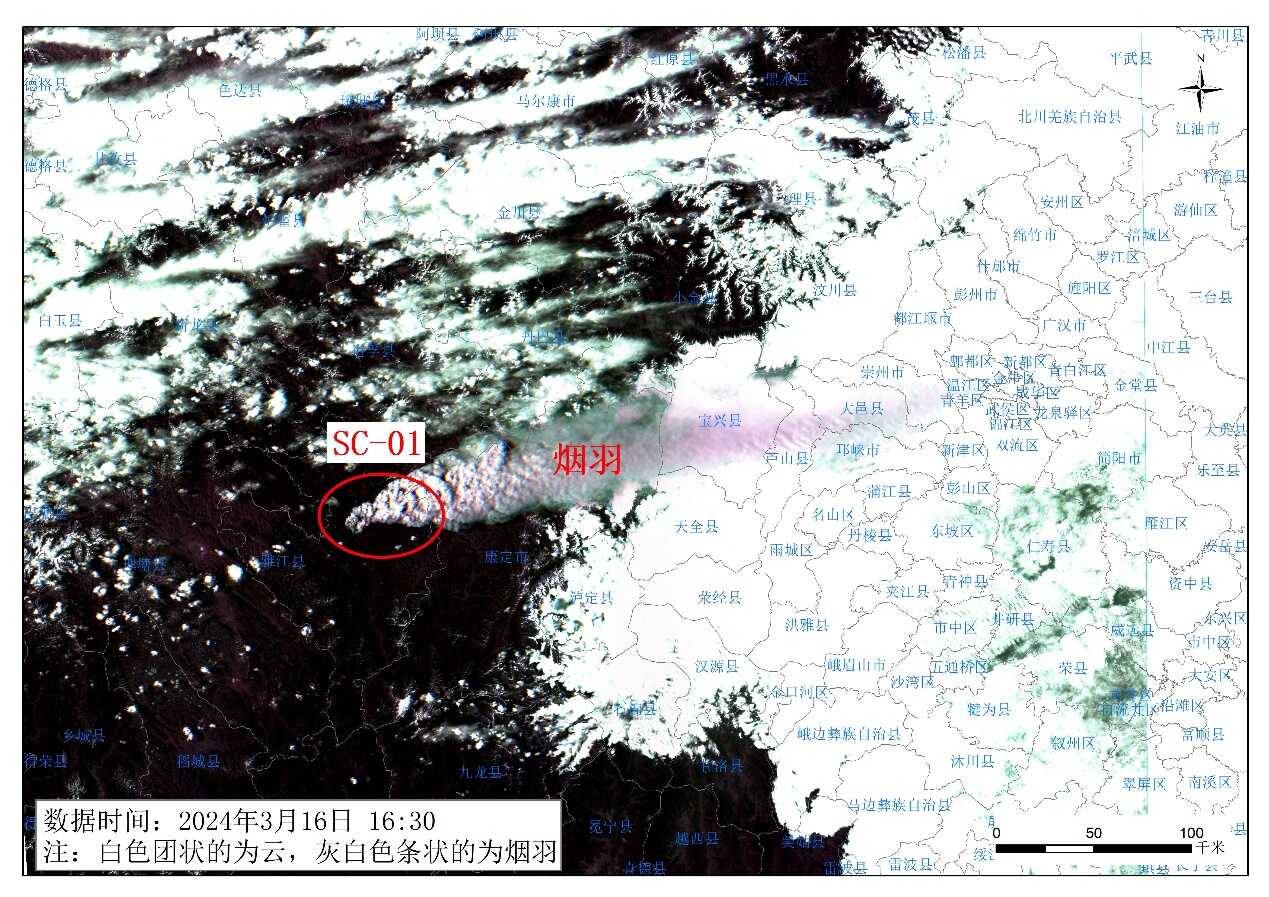 图3 2024年雅江火情烟羽卫星监测图像(3月16日16:30)