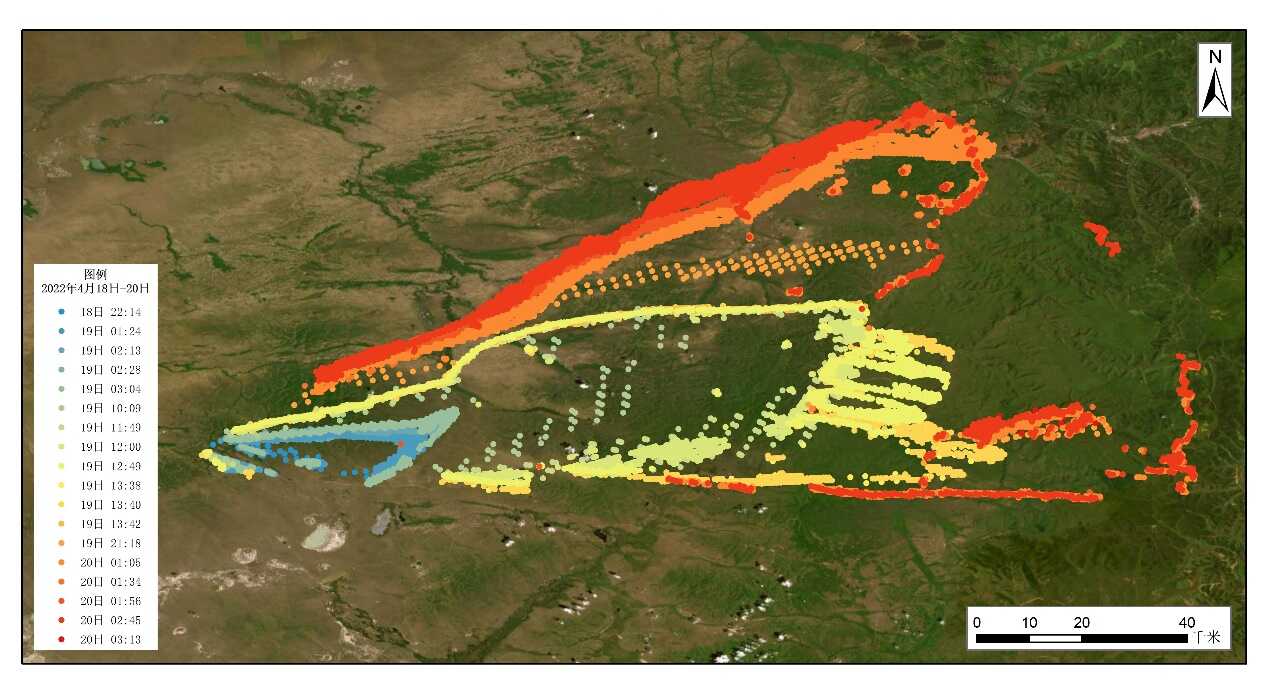 平台对十余颗极轨与静止卫星数据进行时空融合,充分挖掘各卫星优势特征,突破云精准检测、热异常点反演、噪声准确滤除等系列关键技术,对东亚区域地表野火进行近实时精准监测。
