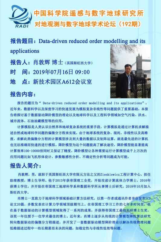 中国科学院遥感与数字地球研究所对地观测与数字地球学术论坛(192期)