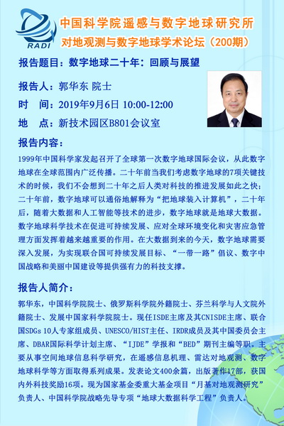 中国科学院遥感与数字地球研究所对地观测与数字地球学术论坛(200期)