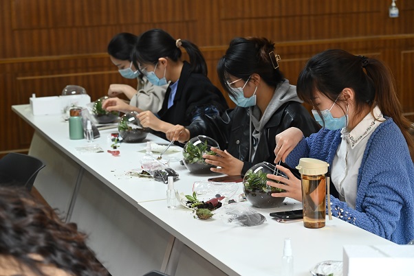 活动开始,工会工作人员首先播放了活动前精心准备的盆栽制作视频,介绍盆栽制作的基本方法、搭配技巧和日常养护注意事项。随后,备受女职工期待的的盆栽DIY活动正式开始。大家根据视频中学到的制作技巧,认真地在透明的花盆中铺土、栽种,将各式各样的绿意盎然、生机勃勃的微型植物以各具特色的造型和布局展现在盆景中。活动过程中,大家互帮互助,每个人脸上都洋溢着欢乐的笑容,如同早春温暖的太阳。