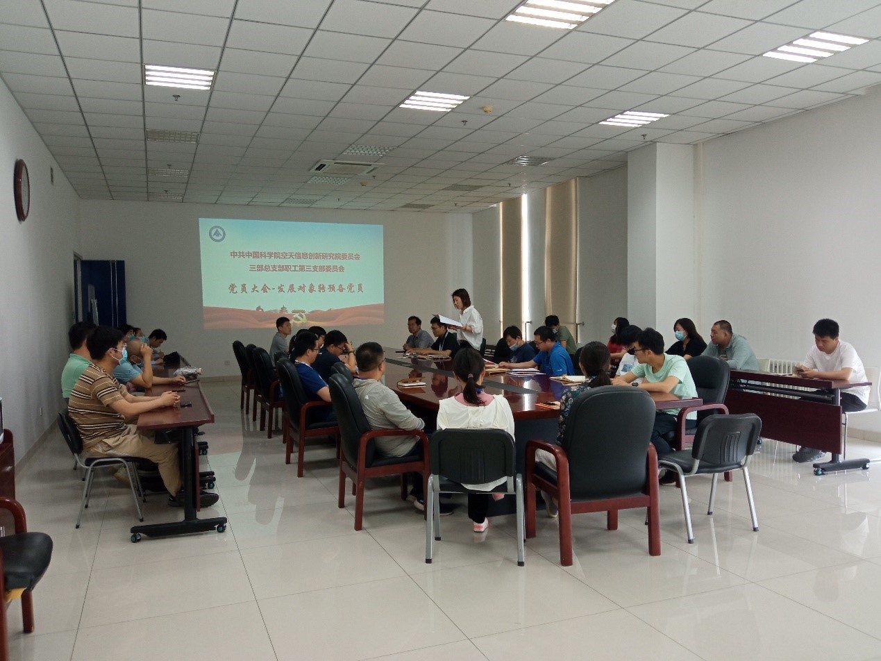 2023年5月26日,三部党总支职工第三支部于怀柔园区召开发展对象转预备党员的支部大会,会议由第三支部书记王建主持,三部党总支书记丁海兵,组织委员高冬平参加。