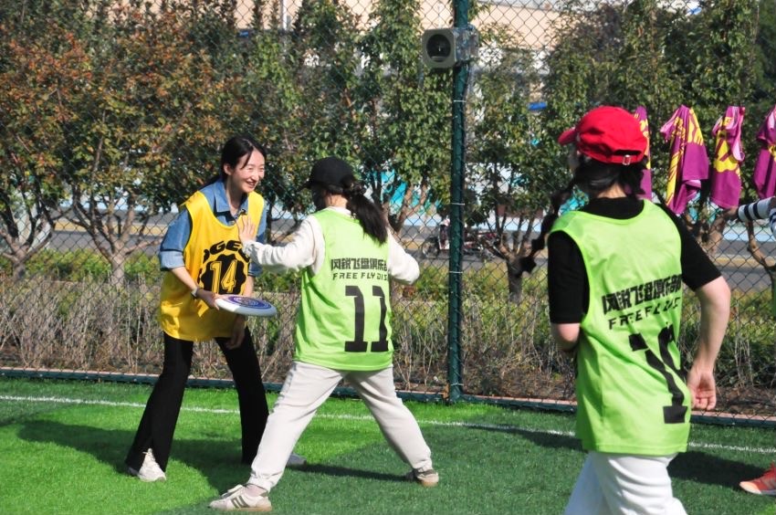 活动一开始,飞盘教练给大家介绍了飞盘的相关知识,包括飞盘的标准规格、飞盘玩法的种类以及飞盘精神等,让大家对飞盘有了一个初步的了解。随后,在教练的带领下,大家进行了简单的热身活动、学习了飞盘的投掷以及接盘的方法并进行了自由练习。接下来通过一个趣味破冰游戏对参加活动的职工进行了分组。在进入到正式比赛环节之前,教练详细介绍了极限飞盘的得分规则,以及一些比赛中的注意事项。最后,橙、黄、绿三个队伍,每两个队伍之间开始正式比赛,大家在赛场上抛出一道道弧线,跳跃、奔跑着去追盘、接盘,尽情感受飞盘带来的乐趣。融合了橄榄球、足球和篮球玩法的飞盘运动将大家的体能发挥到极致,不仅考验了大家的耐力,也磨练了意志力,激发了大家的运动活力。
