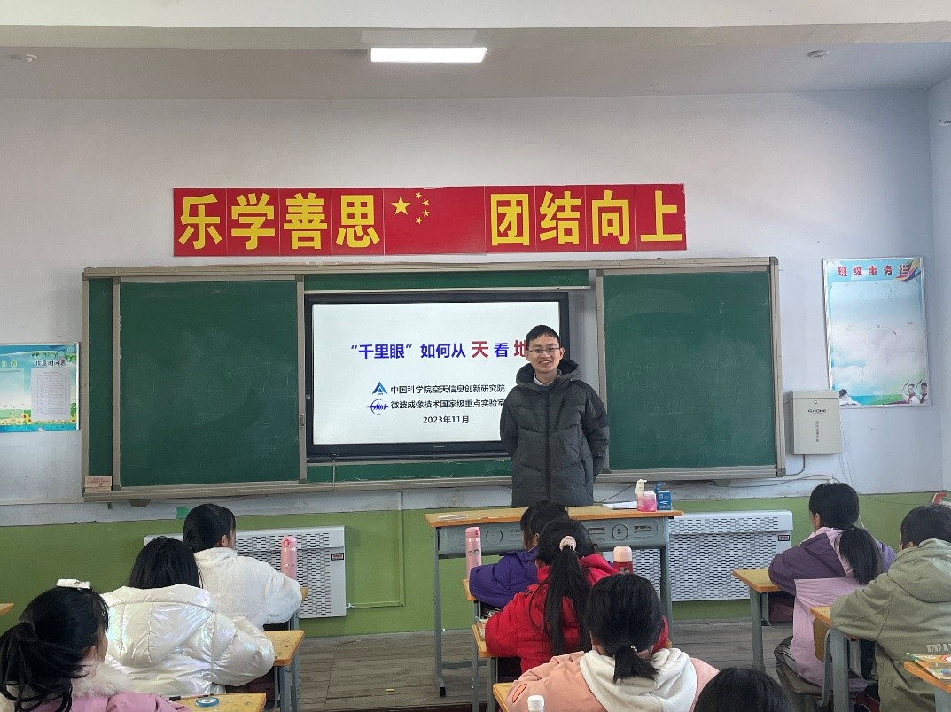 本次特邀讲授人为一室张福博研究员。张福博以“‘千里眼’如何从天看地”为主题,介绍了合成孔径雷达的基本概念、成像原理、特点优势、工作模式、应用场景、发展历史现状等内容。课程层层深入,张福博用通俗易懂的语言、生动形象的比喻,巧妙引导同学们逐步思考、收获知识。报告中还穿插了“多大的眼睛能看多远”“西游记里的‘透视’本领能不能实现”等有趣的科普问答,强烈激发起同学们的好奇心与兴趣。在授课的最后,张福博对同学们提出的问题一一作答,并鼓励其认真学习,不断深造,毕业后为社会、国家作出贡献。活动课上,一室蒋南邑、杨世广老师带领同学们体验毫米波雷达设备无接触测量人体呼吸心跳,同学们纷纷踊跃报名体验,并学习了相关原理知识。