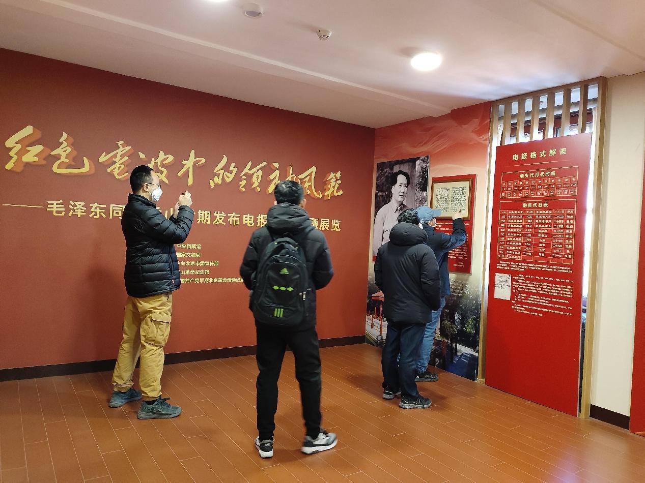 除了参观红楼展室之外,党小组还在北大红楼4楼见到了毛泽东同志香山时期发布电报手稿专题展览。这次展览展示了毛泽东同志在香山时期发布的一些重要电报手稿,以及当时所用的电报机等。这些文物和资料让我们更加深入地了解毛泽东同志在那个时期的革命实践和思想。这些电报手稿是他们革命实践的重要记录,也是我们后人学习和传承的重要财富。香山红色电波见证了中国共产党人广泛团结各界人士,凝心聚力描绘了新中国宏伟蓝图的艰辛探索,彰显了毛泽东同志等老一辈革命家立党为公、执政为民的革命情怀。