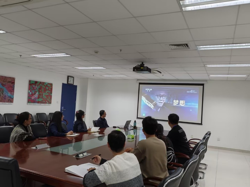 首先,李迈向大家介绍了南仁东先生的事迹,讲述了南仁东先生从1993年提出在我国建设射电望远镜的想法,1994年提出FAST工程概念,主导利用贵州省喀斯特洼地作为望远镜台址,从论证立项到选址建设历时22年的坚辛历程。随后,大家一起观看了纪录片《筑梦天眼》,纪录片中展示了一系列南仁东先生在选址、工程建设过程中图像资料,大家备受震撼。科学家精神是中国共产党人精神谱系的组成部分,承载着党的初心使命,呈现出党的鲜明政治品格。正是在这些勇于探索、脚踏实地、求真务实的一位又一位科学家的带领下,突破一个又一个科学难题,我国的科学技术水平才能不断提高,从而提高了我国的国际地位与国际影响力。