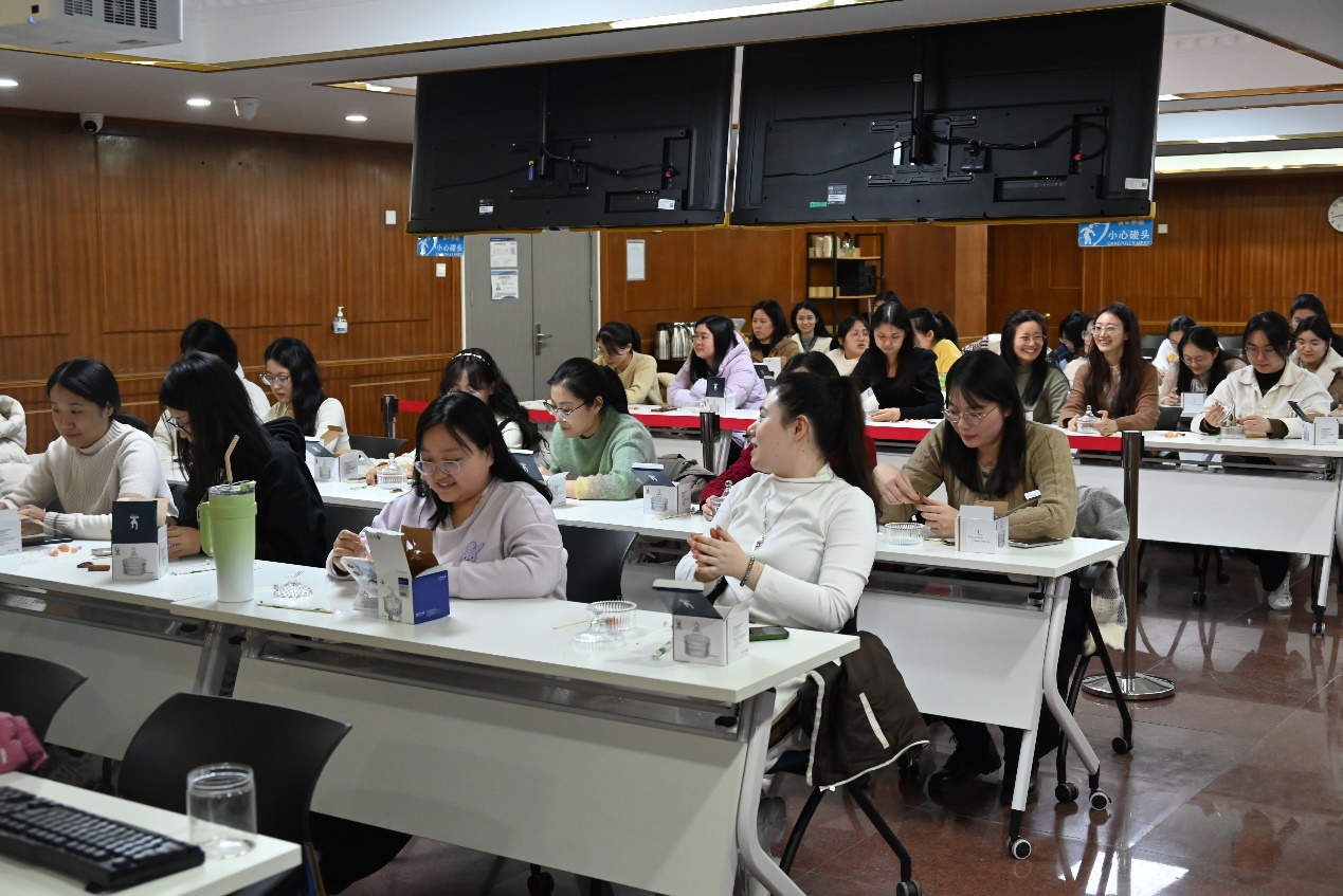 活动开始,工会工作人员向每位女职工分发了内容丰富的材料包,各式各样的香水精油,清新多彩的扩香石……大家的制作热情瞬间被点燃。简单讲解制作流程及注意事项后,接下来的制作过程便由心灵手巧的女职工们自由发挥。固定烛芯、倒入精油、搅拌蜡液、构思造型、摆放道具,每个环节对于个人来讲都是独一无二的,女职工们在制作过程中为自己的香薰蜡烛注入设计理念,设计各种小巧思,最终完成了独属于自己,香味各异,造型多样的香薰蜡烛。