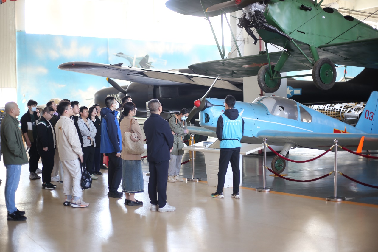 在长空逐梦展区,支部成员们从航空设计、航空发动机、航空电子、航空航天4方面了解了航空科技的关键技术在推动航空发展中所起的作用。银鹰巡空展区采用地面与空中立体式的展陈方式,陈列了北航自建校以来收藏的近三十架各型实体飞机,这些来自不同国家、不同时代、不同用途的飞机,讲述了一段段关于天空和飞翔的故事,让我们深刻感悟到那一幕幕难以忘却的历史,展厅中的“北京一号”(原名“北航一号”)是我国第一架自行设计和研制的轻型旅客机,也是66年前北航学子的毕业论文。火红涂装的“北京一号”展现出独立自主、自力更生、艰苦奋斗、知行合一、空天报国的理念,激励着我们矢志向前。空天走廊展区分为航空科技史与航天科技史两部分进行展示,既是一层航空展厅的总结,又是二层航天展厅的开启,空中悬吊的航空航天不同发展阶段的模型群组与地面上的展台柜中的重点展品相互呼应,让支部成员们深入了解航空航天发展的科技历程。神舟问天展区是一个交织着现实与梦想的展示空间,以现实辉映梦想,让人身临其境感受短短半个多世纪的时间跨度中探索宇宙空间取得的现实成果。