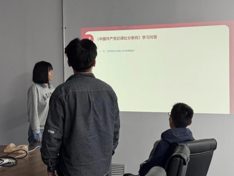 为深入开展党纪学习教育,学习贯彻党纪党规,加强党的纪律建设,5月11日,八部党总支学生党支部第一党小组开展了党纪学习教育主题党日活动,此次活动由组长杨润芝主持。
