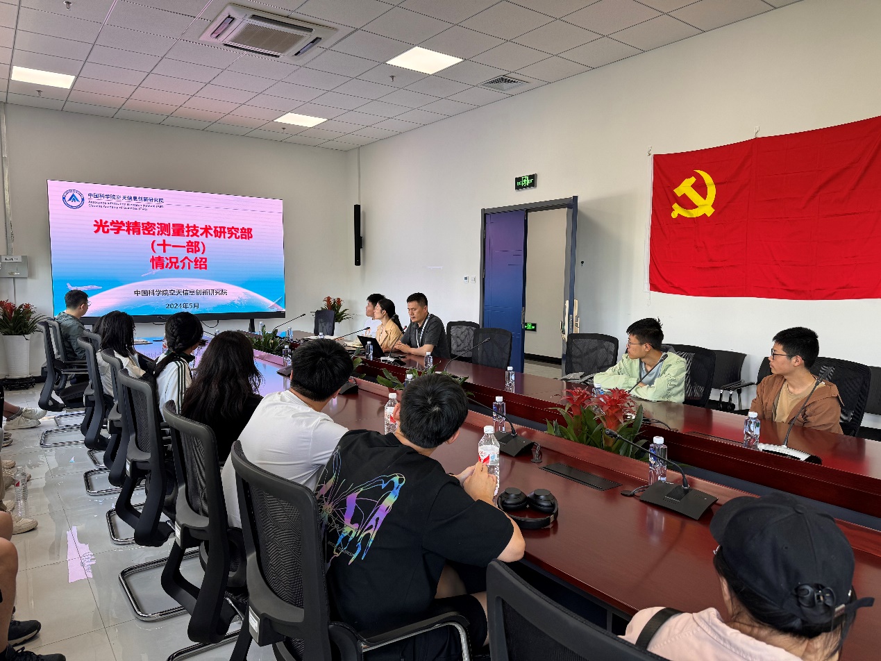 本次活动分为座谈和实验室参观两部分。首先,十一部副主任孔新新介绍了部门概况和主要研究方向,分享了部门在光学精密测量领域的研究成果,并展示了部门学生的科研方向与就业去向。