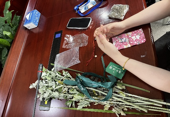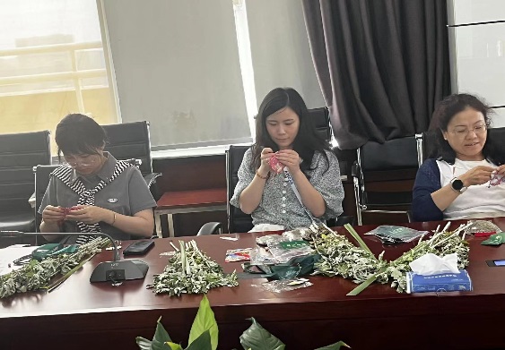 活动伊始,全体人员一起了解端午节的起源和习俗,体会端午节两千多年的历史和深厚的文化内涵。端午节在传承发展中杂揉了多种民俗为一体,民谚说:“清明插柳,端午插艾”,插艾草花束作为端午节的传统礼俗,自古传承,至今不辍。