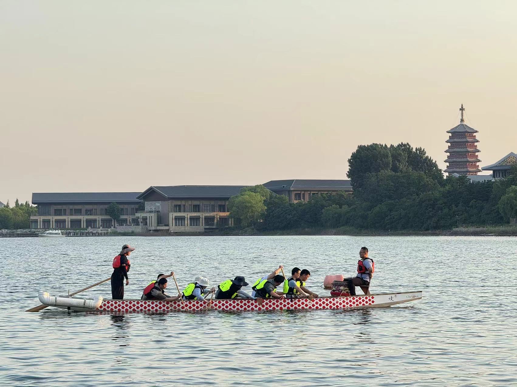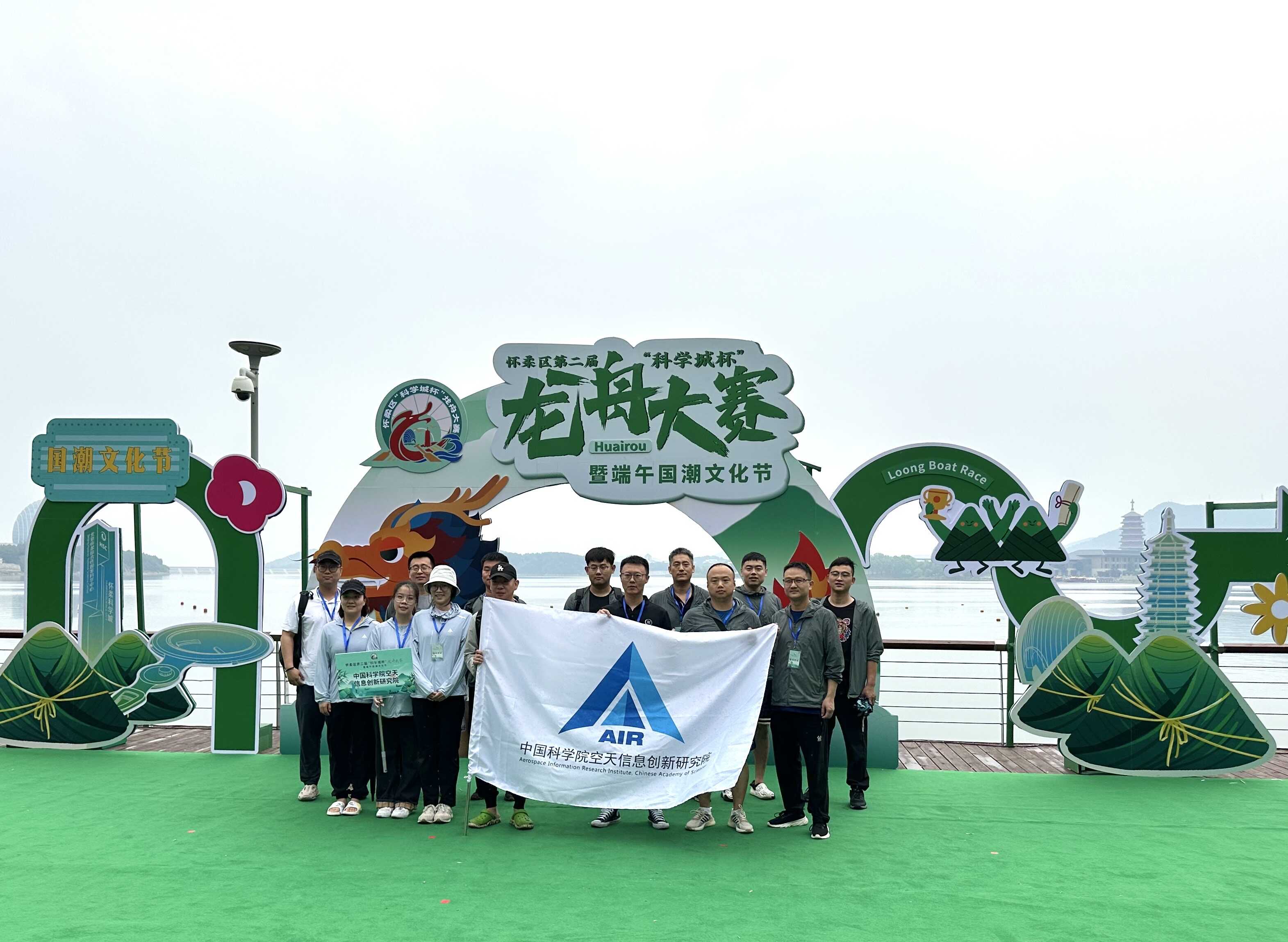 此次活动由怀柔区人民政府、怀柔科学城管理委员会、中国科学院科技创新发展中心联合主办,参赛队伍包括北京大学、中国科学院大学、中国科学院物理研究所、北京纳通科技集团有限公司等共16支。比赛于2024年6月7日在怀柔雁栖湖景区举行,活动当天夏雨滂沱,但运动员们依旧热情高涨、摩拳擦掌。空天院龙舟代表队由质量处张英浩领队,质量处庞满壮、三部张树云、六部田慧杰等15名职工共同参加了此次龙舟比赛。赛中,队员们互相鼓励,动作整齐划一,展现出了风雨无阻、勇往直前的气魄与精神,最终200米的赛道划出了1分10秒的好成绩。