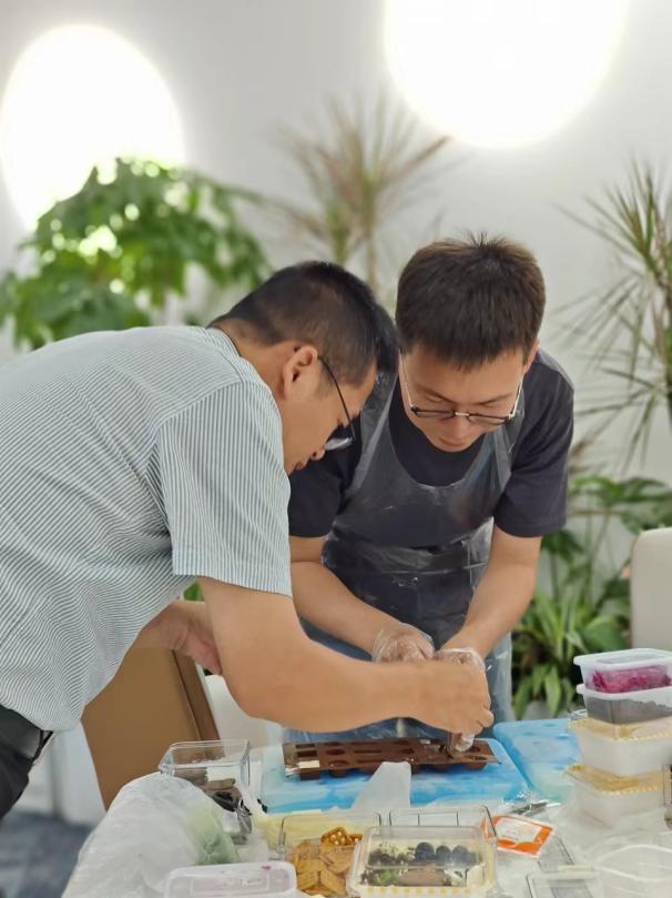 会员们互相分享着自己的作品,品尝着不同口味的巧克力,现场弥漫着阵阵诱人的香味和欢声笑语。除烘焙外,活动还设置了团队游戏环节,增强了团队之间的默契和互动。通过这次活动,分工会成员更加了解彼此,团队凝聚力得到了提升,更有信心和动力面对未来的合作挑战。