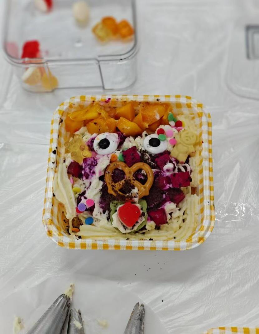 在专业人员的指导下,工会成员们深入学习了不同奶油材质的特性和打发技巧,并了解了各种蛋糕的详细制作过程。大家结合个人喜好,亲手制作了两款独具特色的盒子蛋糕。在巧克力制作环节中,大家用可可粉和各式坚果、果干融合,制作处了美味可口的巧克力,并互相分享手工作品。