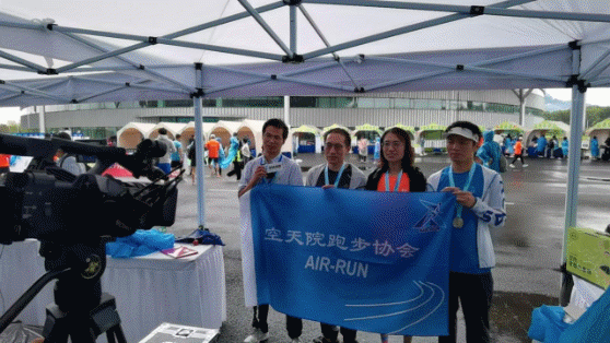 空天跑协参赛队员(从左至右分别是白进周、余超、王媛媛、娄新星、王彩英、马兰溪、俞世吉、田帮森)