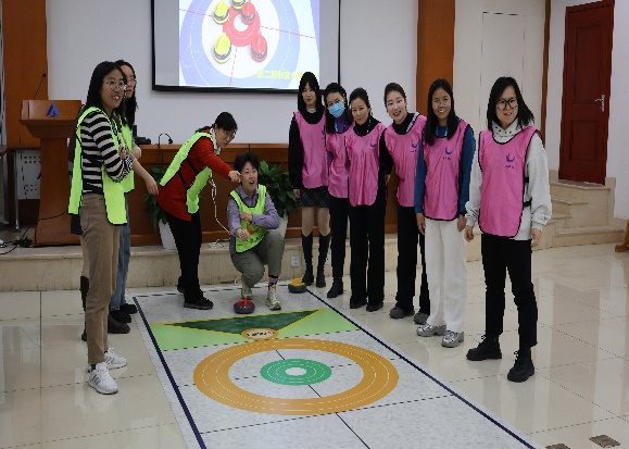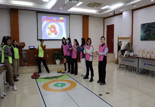 随后,教练上场为大家介绍了旱地冰壶的基本规则和技巧。旱地冰壶是一项集技巧、策略和团队合作为一体的运动,要求参赛者不仅要具备精准的投掷能力,还要善于观察对手的布局,制定出合理的战术。教练耐心细致地讲解每一个动作要领,女职工们听得津津有味,纷纷摩拳擦掌,跃跃欲试。