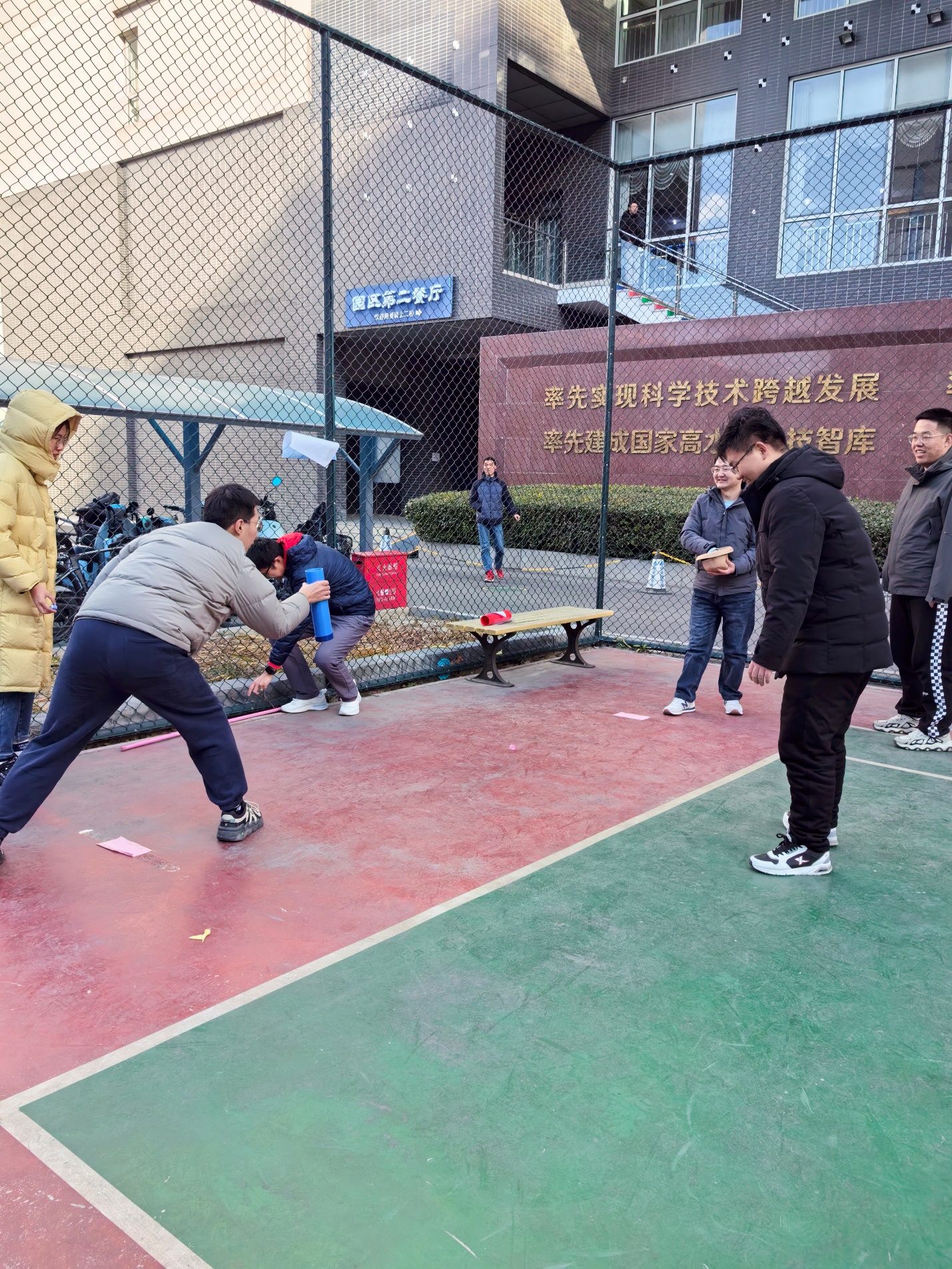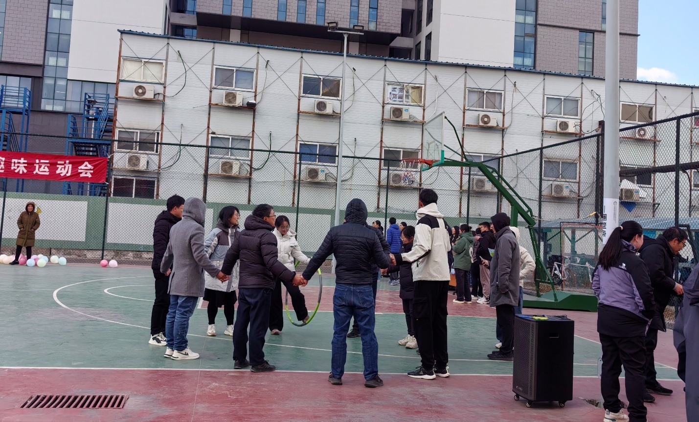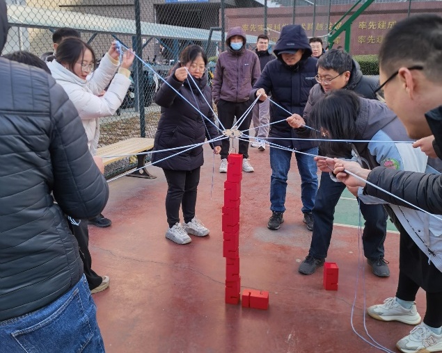 活动当天虽然气温骤降,四五级的北风让篮球场格外寒冷,但挡不住热情似火的运动员们,活动用的气球也被风刮的四处飘散,给运动会增添了无穷的欢乐氛围。本次活动设置了8个比赛项目:一圈到底、不倒森林、合力搭建、巧接彩球、气球运纸杯、众星捧月、同心击鼓、一锤定音。12点不到,队员们纷纷来到篮球场开始热身,12:30比赛正式开始。一圈到底的队员们手拉手围一圈不分开,用呼啦圈穿过所有人的身体回到原位,肢体眼神相协调、手脚并用乐开怀。不倒森林的队员们人人手持一根塑料杆围成一个大圈,大家眼疾手快,注意力高度集中、相互配合,笑声不断。合力搭建项目的10个队员手拉绳子,每个人都扮演好自己的角色小心翼翼的把积木块垒一起,充分感受到只有分工互补才能为完成团队任务做出贡献。巧接彩球虽然每组只有2个人,一人投一人接但很考验眼疾手快和身体的灵活性。气球运纸杯更是欢乐满满,大家全情投入、各显神通,有的稳步前行、有些状况百出,气球似乎不听话故意泄气、纸杯掉落,带来阵阵欢笑和快乐。众星捧月捧出心中的温柔和快乐,队员们手握雷霆鼓、捧起活力球,相互协作颠起鼓,活力球如快乐的小鸟跳动起来。同心击鼓是我国古代乐府诗中的一句诗句,寓意人们心心相印、齐心协力的精神,是一种团结合作与集体力量的象征;队员们手握绳子,心往一处想、劲往一处使,很快就击起来了,欢声笑语也此起彼伏。最后一个项目是一锤定音,原意是制作锣鼓时最后一锤决定锣的音色。队员们手持气锤从起点跑向气球区,使劲全身力气击爆气球,不仅要跑的快而且要砸的恨,一下把运动会的氛围拉满,气氛也达到了高潮。经过1个多小时比赛、裁判记录、打分、汇总,最终数字地球平台部获得了一等奖,CBAS秘书处+办公室、光学室两支队伍获得二等奖,海气室、微波室、遗产室和卫星数据部四支队伍获得了三等奖。比赛结束后很多同事认为,这样的活动太有趣了,不仅让大家在繁忙的科研工作之余丰富了文体生活,活跃了冬日的气氛,而且促进了相互间的交流,身心也得到尽情放松。