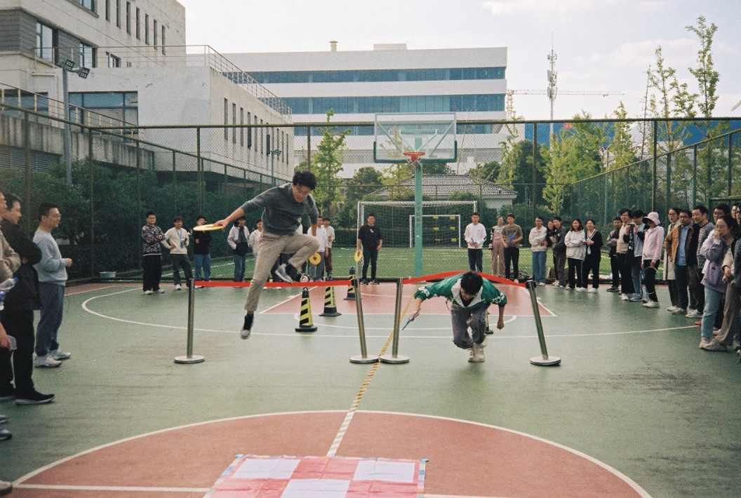 趣味运动会设置个人赛和团体赛,将趣味性、竞技性、协作性融于一体。个人赛分为“定点投篮”、“精准射门”、“投壶+掷沙包”、“一分钟跳绳”、“一分钟踢毽子”5个项目,团体赛分为“巨人脚步”、 “极速三子棋”、“滚铁环”、“众人拔河”4个项目。在个人赛中,参赛者们竞相展现自己的实力,隐藏的民间“高手”纷纷赢得喝彩。在团体赛中,参赛者们通过灵活的身姿和精准的配合,将团队协作和默契配合展现得淋漓尽致。整个赛场上充满了欢声笑语和紧张刺激的氛围,大家也感受到了传统文化与现代体育精神的融合。
