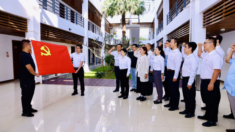 活动最后,在三亚园区党支部书记何涛的带领下,全体党员面向党旗庄严宣誓,重温入党誓词。在铿锵有力的誓言中,党员们进一步坚定了“科技强国、空天报国”的理想信念。