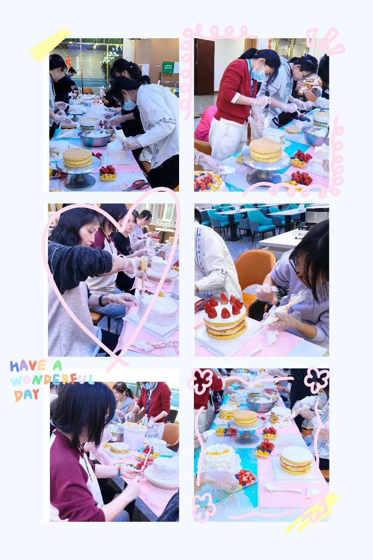 整个活动现场氛围愉悦,欢笑声不断。大家不仅学习了蛋糕制作要领,还掌握了蛋糕涂抹和裱花的小技巧。通过本次活动,大家放松了心情,增进了彼此间的感情,收获了一份自己动手制作的专属女神节蛋糕,活动取得了圆满的成功。