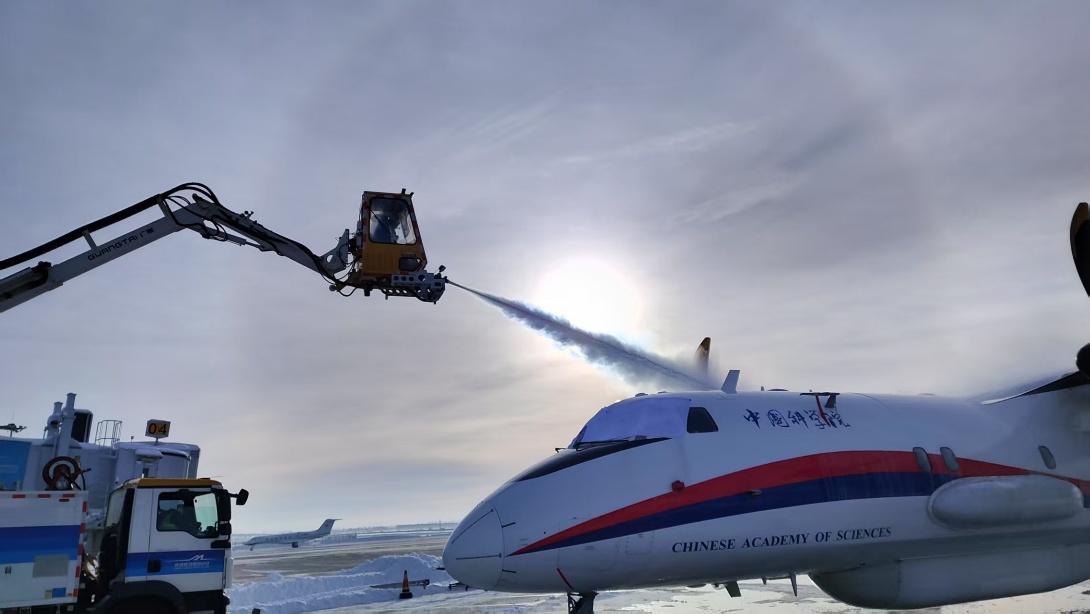 而在完成状态变更后,遥感飞机机翼、尾翼上厚重的积雪和覆冰,是腾空前的最后一道险关。凛冽寒风中,除冰团队攀上工作架,高压除冰液喷涌而出,在机体表面瞬间凝结成冰壳,又迅速被下一股热流艰难剥离,每一寸冰层的清除,都是对飞行安全不可退让的承诺。