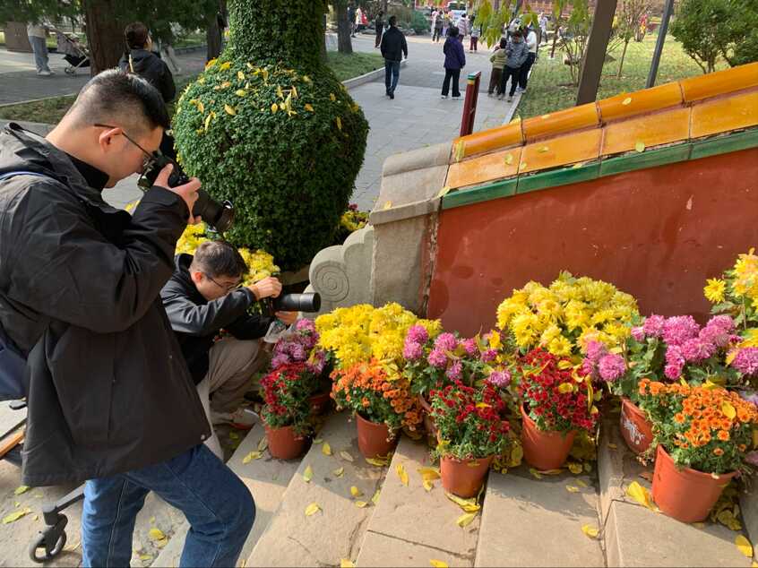 本次采风以“京津冀豫菊花联展”为主题,北海公园作为主展区,展出500多个珍稀菊花品种,包括“国华大典”“冬雪”“紫云”等特色品种,并设置插花艺术展演、文化讲座等环节。协会会员参与活动,通过拍摄菊花特写、景观全景及人文互动,创作了大量摄影作品。