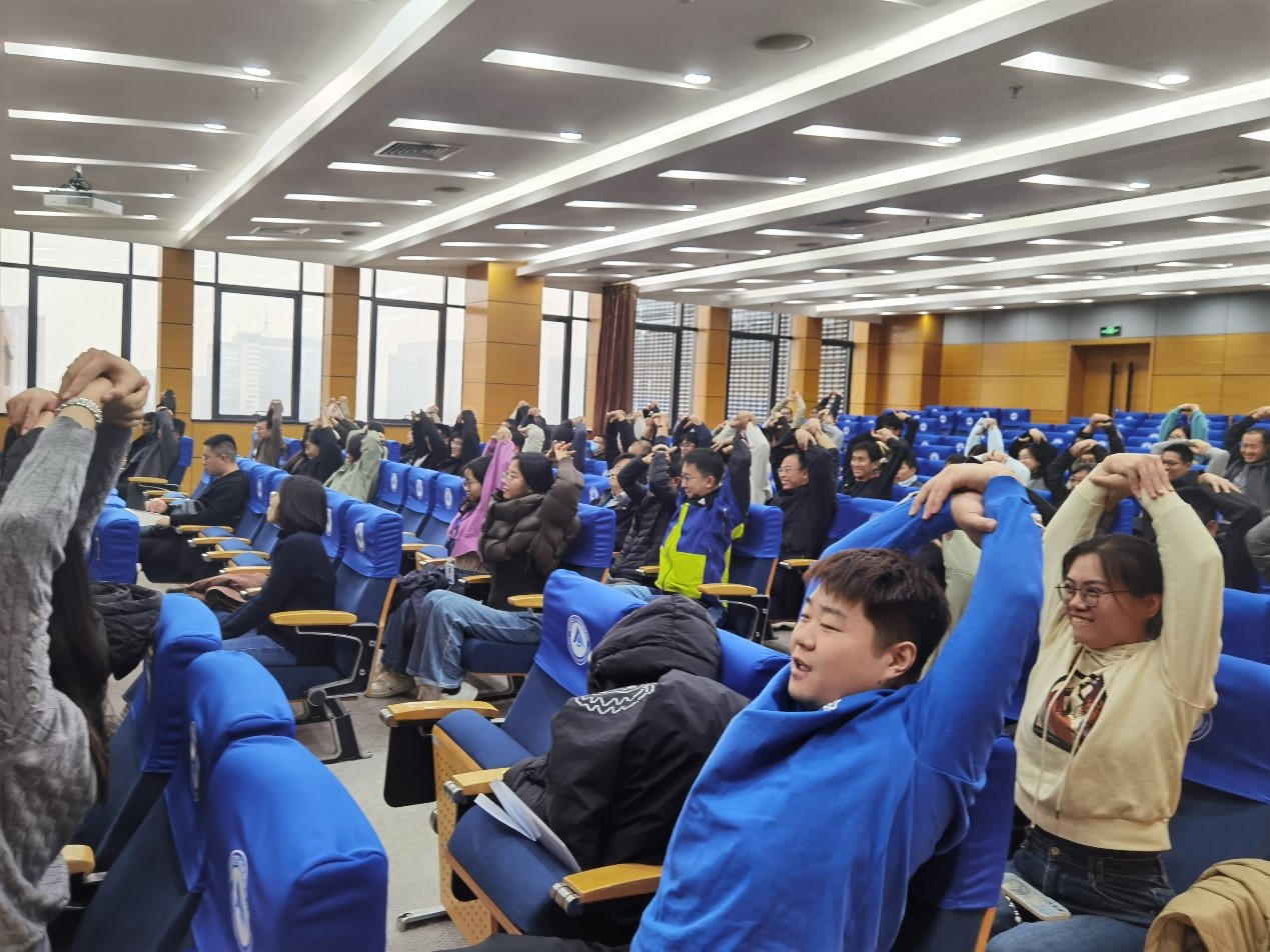 为将职工需求落实到实处,活动聚焦办公室颈肩腰健康保护及健康生活方式主题展开深度分享,特设了互动体验环节和答疑交流环节。在互动体验环节,播放专业瑜伽教学视频,伴随着舒缓的背景音乐,带领全场职工练习:从舒缓脊柱僵硬,到侧伸展放松腰侧肌肉,再到脖颈环绕缓解肩周紧张,每个动作都针对性适配办公人群需求。职工们跟着视频做动作,平时紧绷的肩颈一下子舒展了,现场边练习边交流,此起彼伏的呼吸声与拉伸声成为最生动的回应。