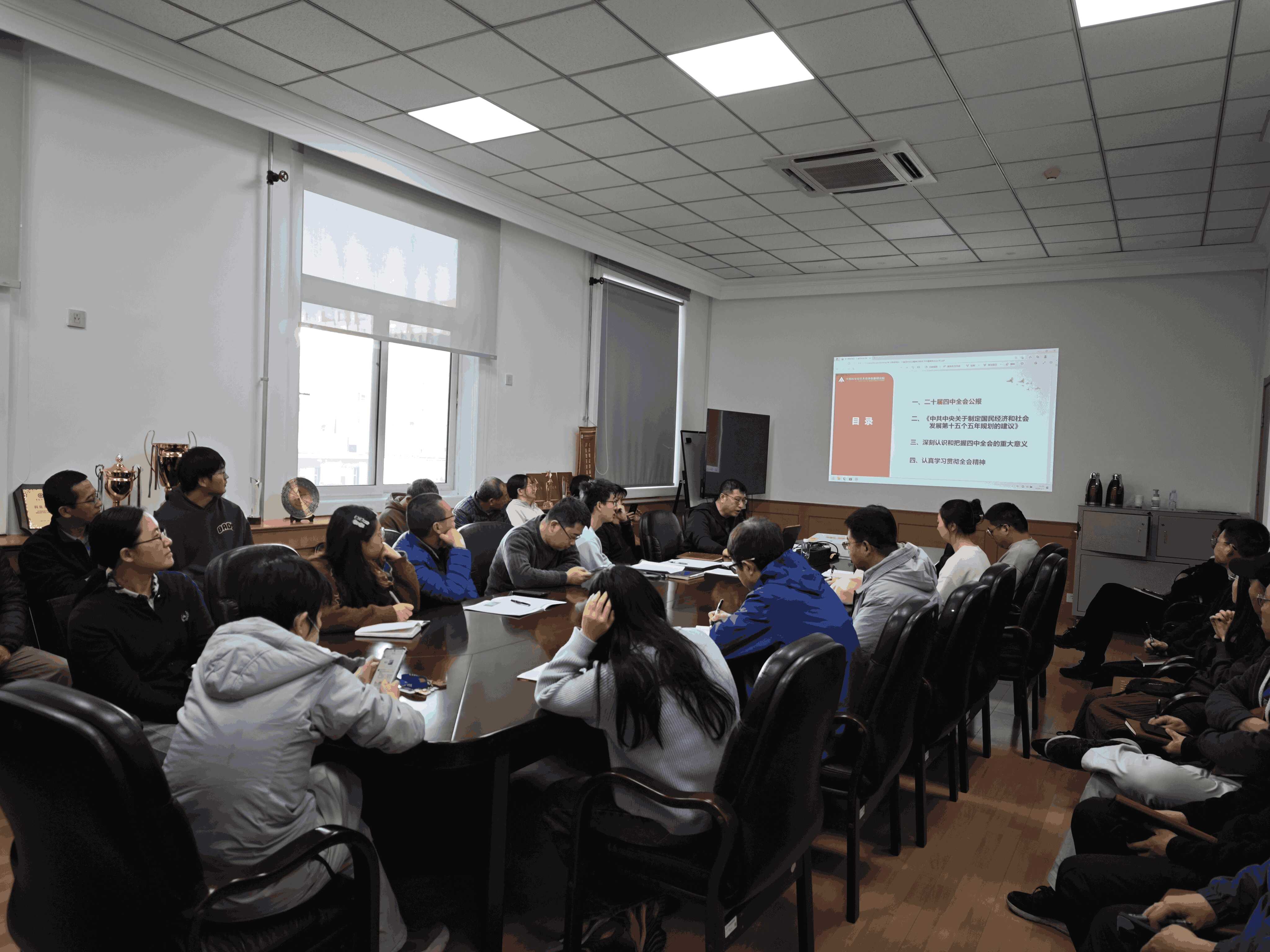 会上,党支部围绕学习贯彻党的二十届四中全会精神开展专题学习。会议组织学习了党的二十届四中全会公报,重点领会全会的主要内容和重要成果;并集中学习了《中共中央关于制定国民经济和社会发展第十五个五年规划的建议》,重点把握“十五五”时期经济社会发展的总体要求、主要目标和重点任务。