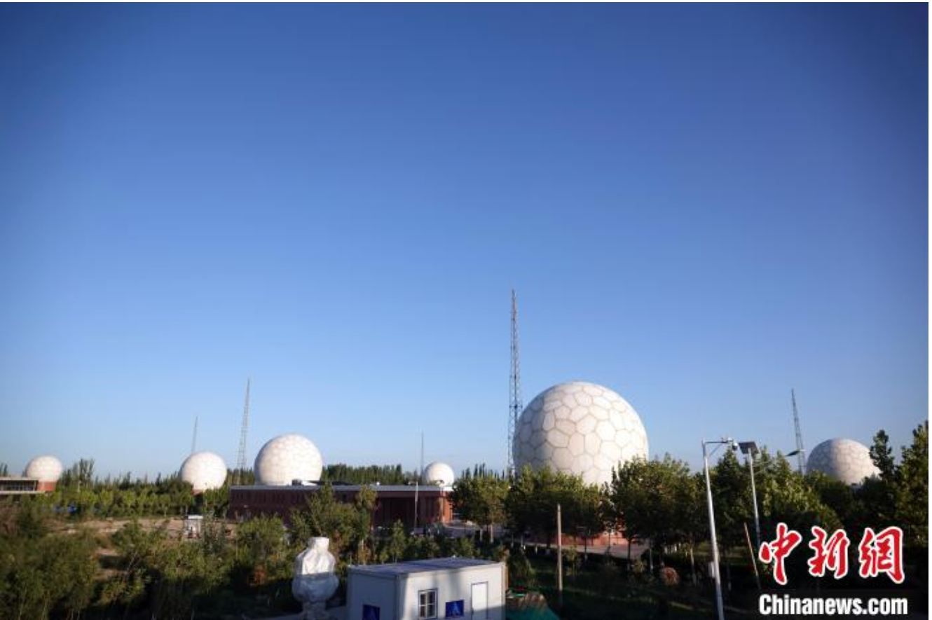 8月上旬,中国科学院空天院喀什站壮观的卫星数据接收天线 中新社记者 孙自法 摄