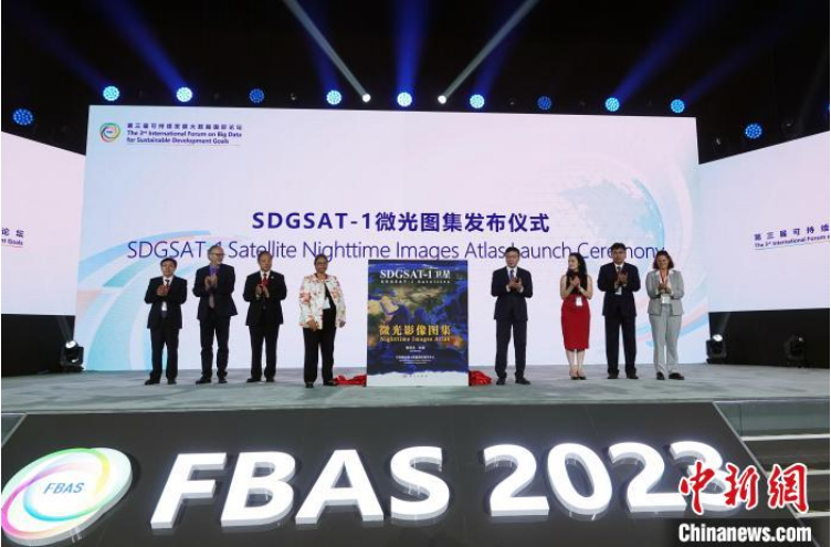 第三届可持续发展大数据国际论坛开幕式上,SDG中心发布全球首部城市夜间灯光遥感图集《可持续发展科学卫星1号(SDGSAT-1)微光影像图集》 中新网记者 孙自法 摄