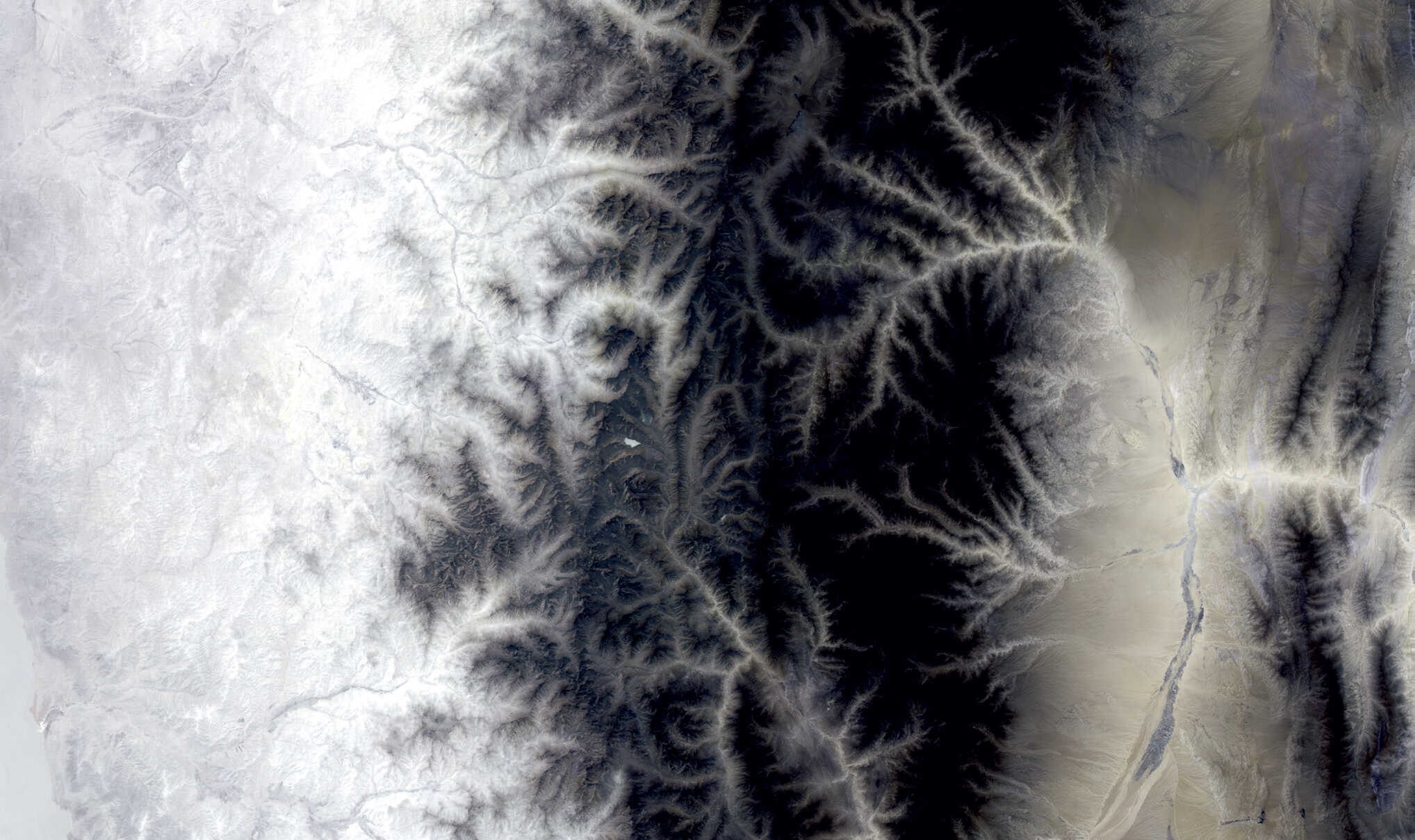 安第斯山脉位于南美洲,山脉以南北向沿太平洋海岸穿越整个大陆,山脉中含有大量矿石资源。三波段热红外图像中,图像中部的山脉高海拔地区与西侧临海和东侧内陆地区有着不同的温度属性。