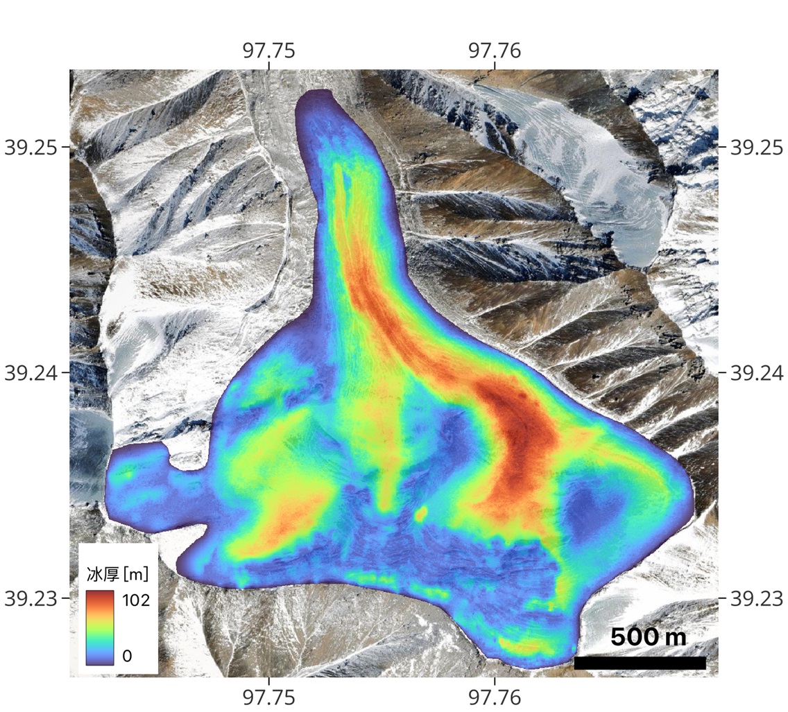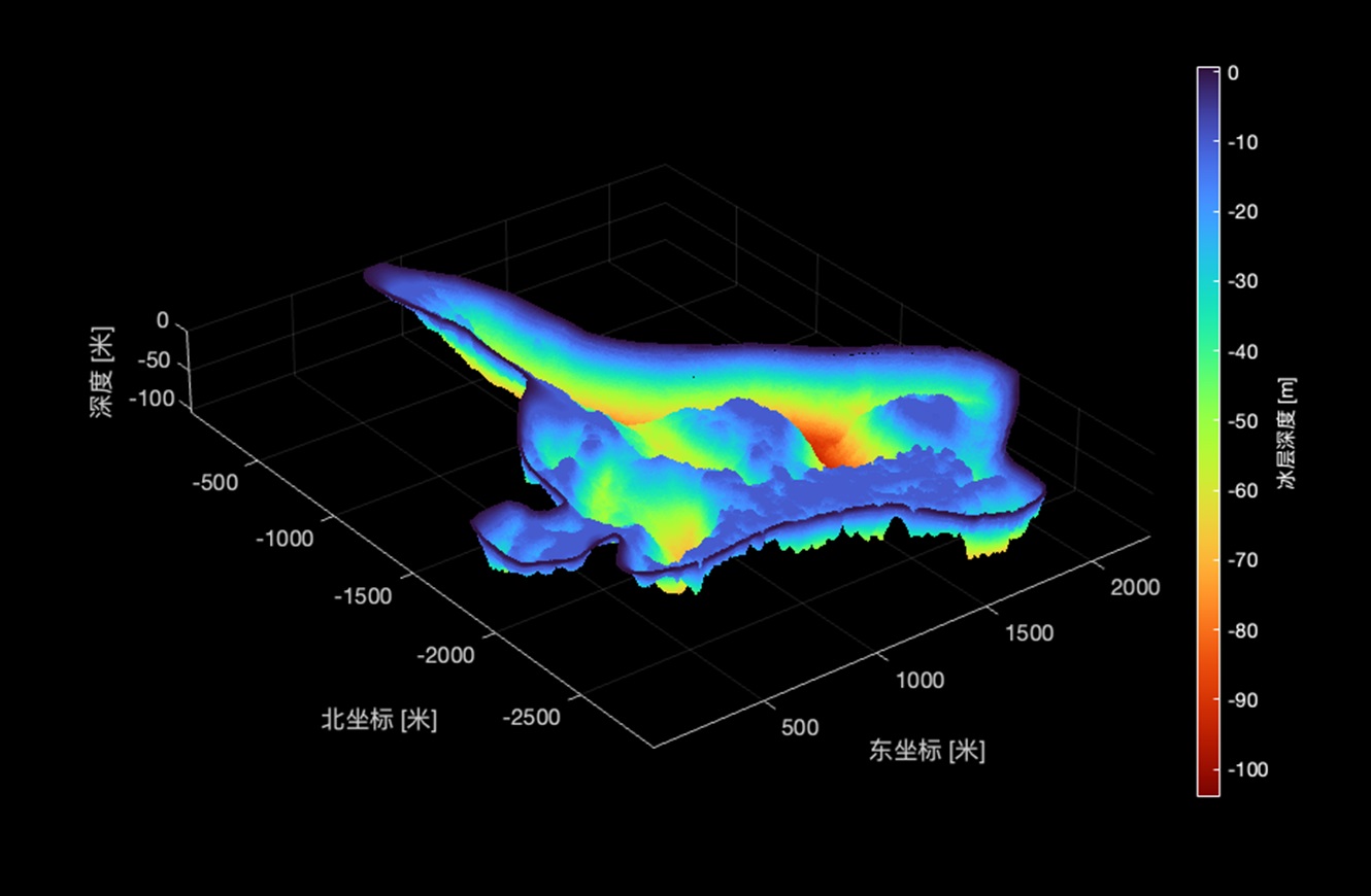 本次调查自2024年9月至11月,共有效飞行13架次,采集原始数据5.6TB,取得了冰川表面数字高程模型(DEM)、冰川底部基岩数字高程模型(DEM)、冰川剖面图、冰川储量、冰川三维透视图及3个典型冰川储量等成果,并结合探地雷达(GPR)测量数据完成了冰川厚度准确度评价,圆满完成了项目各项任务。