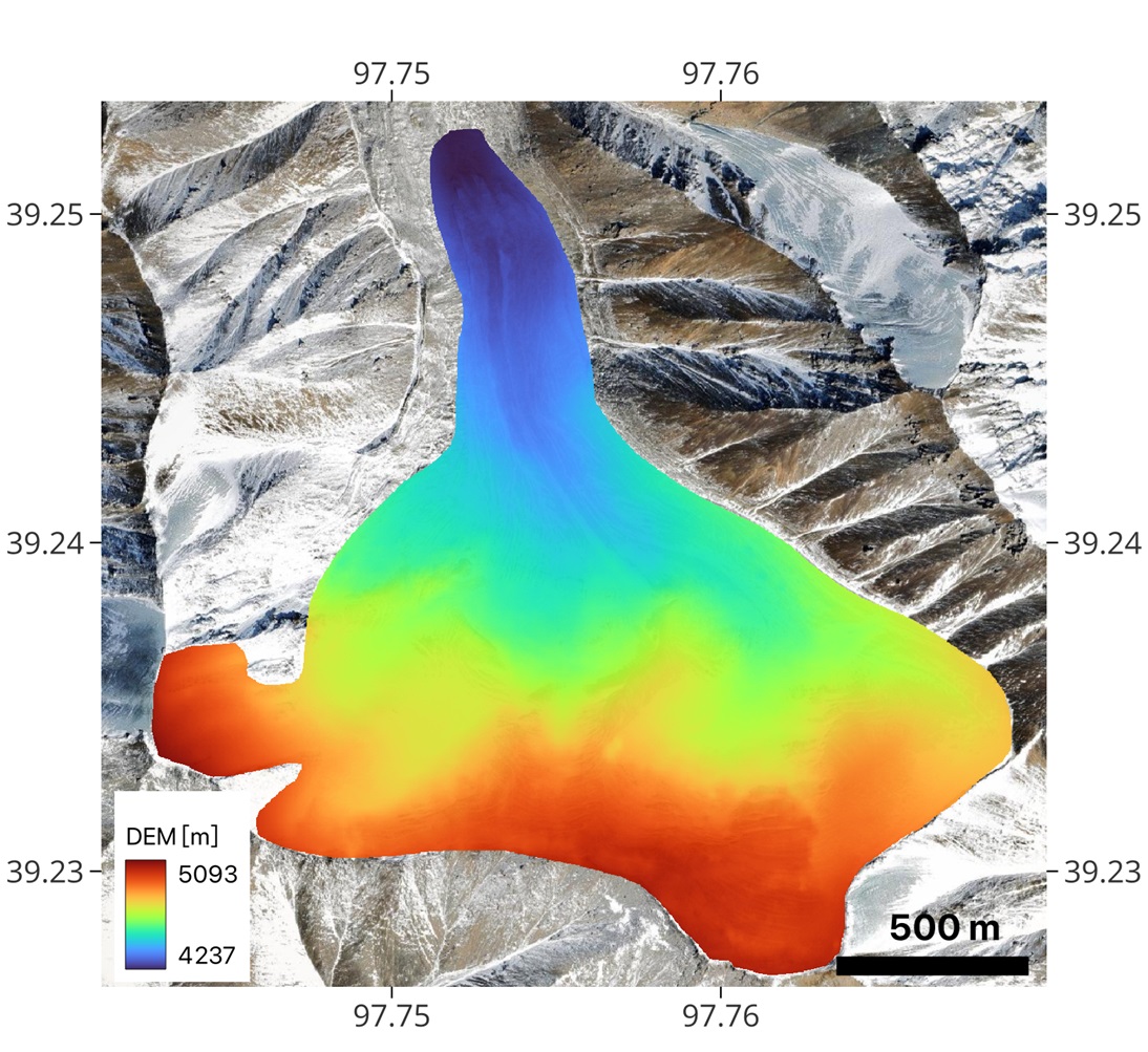 本次调查于2024年9月至11月实施,遥感飞机共有效飞行13架次,采集原始数据5.6TB,取得冰川表面数字高程模型、冰川底部基岩数字高程模型、冰川剖面图、冰川储量、冰川三维透视图以及3个典型冰川储量等一系列重要成果,并结合探地雷达测量数据完成冰川厚度准确度评价。