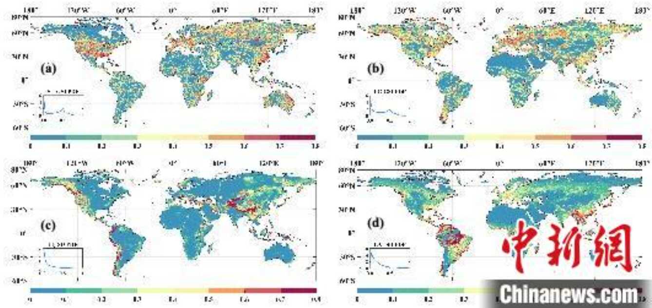 论文第一作者、中国科学院空天院硕士研究生彭晨晨介绍说,为解决全球土壤水分天地观测尺度不匹配的问题,在本项研究中,研究团队从全球尺度土壤水分站点空间代表性如何度量、地表下垫面的空间异质性如何表征、空间异质性如何影响站点空间代表性三个方面展开深入分析研究;利用扩展三重匹配技术,实现对站点的空间代表性评估;利用空间异质性指标和空间标准偏差,在全球尺度上量化了土壤质地、地表类型、海拔和植被覆盖度等4种地表下垫面影响因素的空间异质性。
