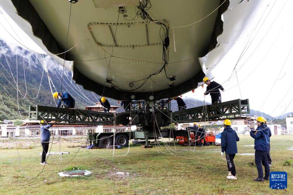 9月18日,极目一号”浮空艇大气观测试验现场,科研人员在调试观测载荷。