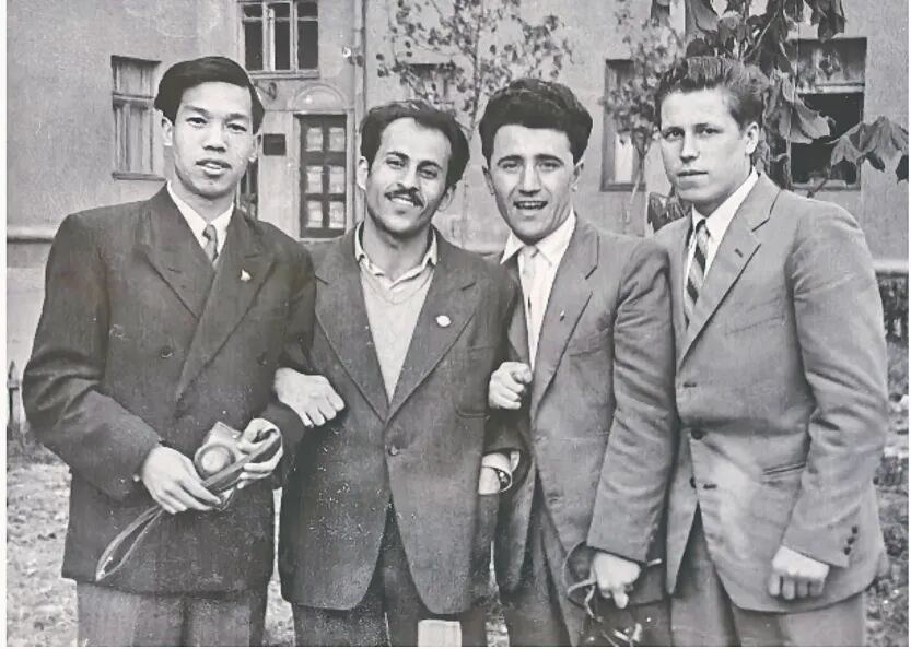 童庆禧(左一)在苏联敖德萨水文气象学院学习期间与同学合影