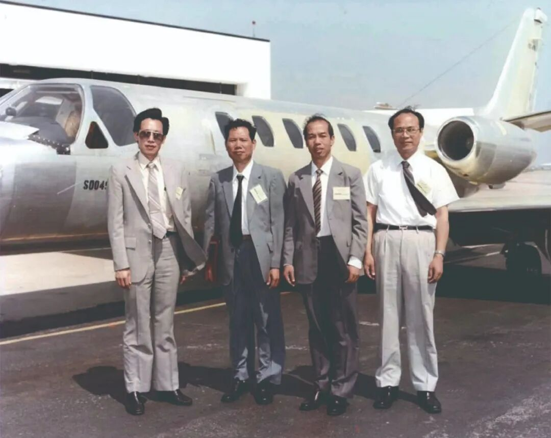 童庆禧(右二)、薛永祺(右一)等赴美讨论遥感飞机适用性改装方案