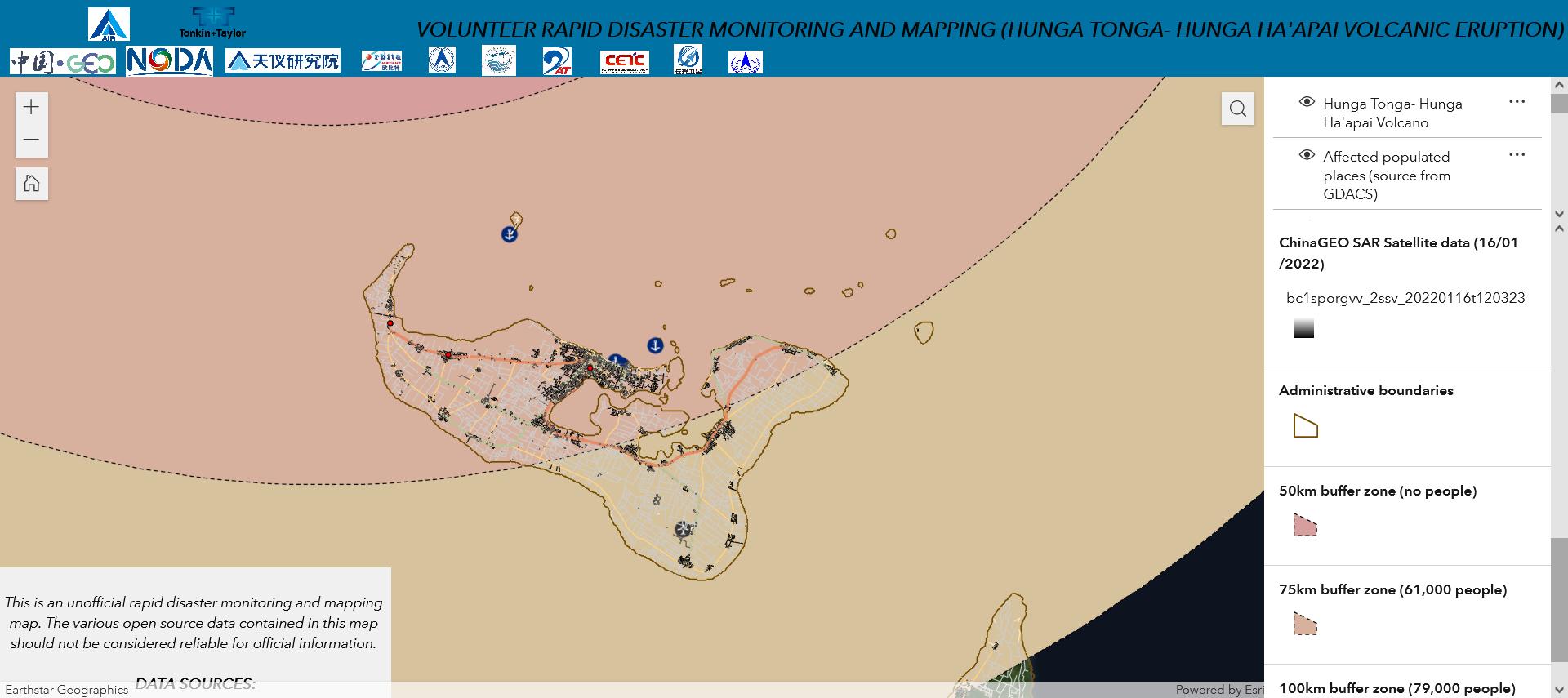 1月25日,由中国科学院空天信息创新研究院和新西兰减灾机构共同研发的“汤加火山爆发和海啸灾害快速制图分析平台”通过新西兰奥克兰大学推荐给汤加政府。汤加首相索瓦莱尼对此以邮件形式表示感谢,并于当日交办给相关政府部门使用。