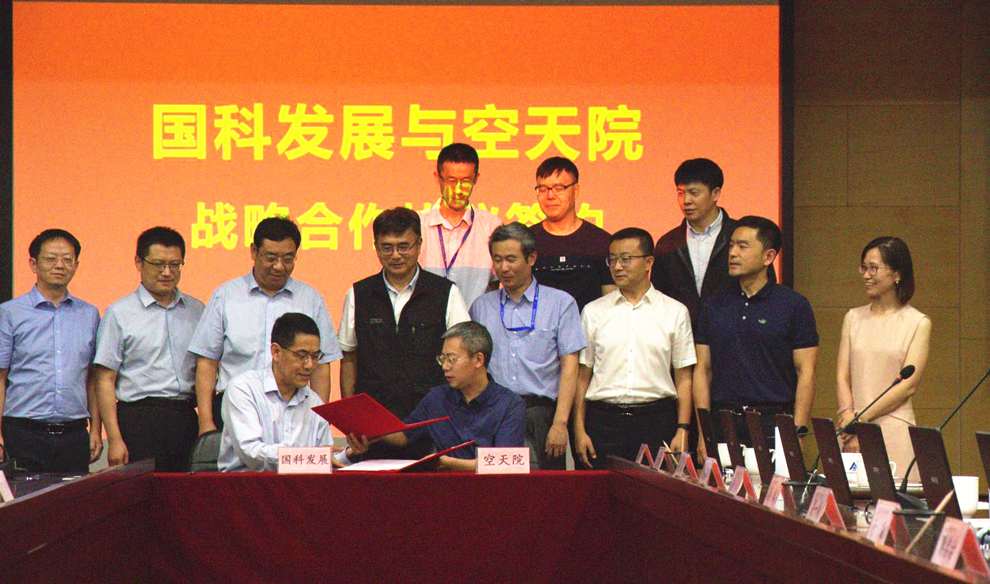 在索继栓、吴一戎、蔡榕的见证下,白建伟与付琨代表国科发展和空天院签署战略合作协议。根据协议,双方将围绕空天信息领域重大需求,建立科技创新、成果转化良性互动机制,针对中科卫星科技集团有限公司、山东微波电真空技术有限公司和浮空器系统等空天院重大产业化项目进行投资布局,联合推动院属企业审批备案工作,支持空天信息领域原始创新和关键核心技术攻关,创造良好的社会和经济效益。