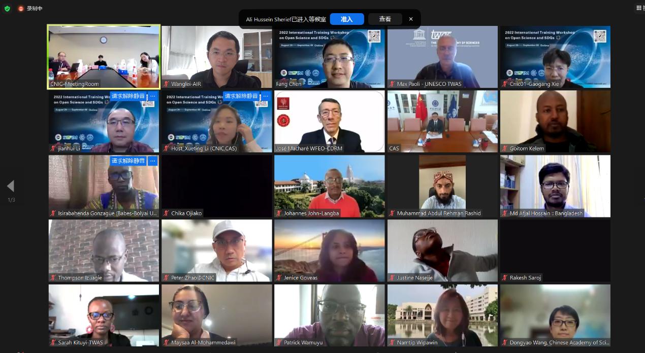 8月29日,由可持续发展大数据国际研究中心(以下简称“SDG中心”)、中国科学院-发展中国家科学院空间减灾卓越中心(SDIM)、国际科学理事会数据委员会(CODATA)、中国科学院空天信息创新研究院联合主办,全球开放科学云国际项目办公室(GOSC IPO)等机构协办的2022开放科学和可持续发展国际培训班开幕式在线举行。